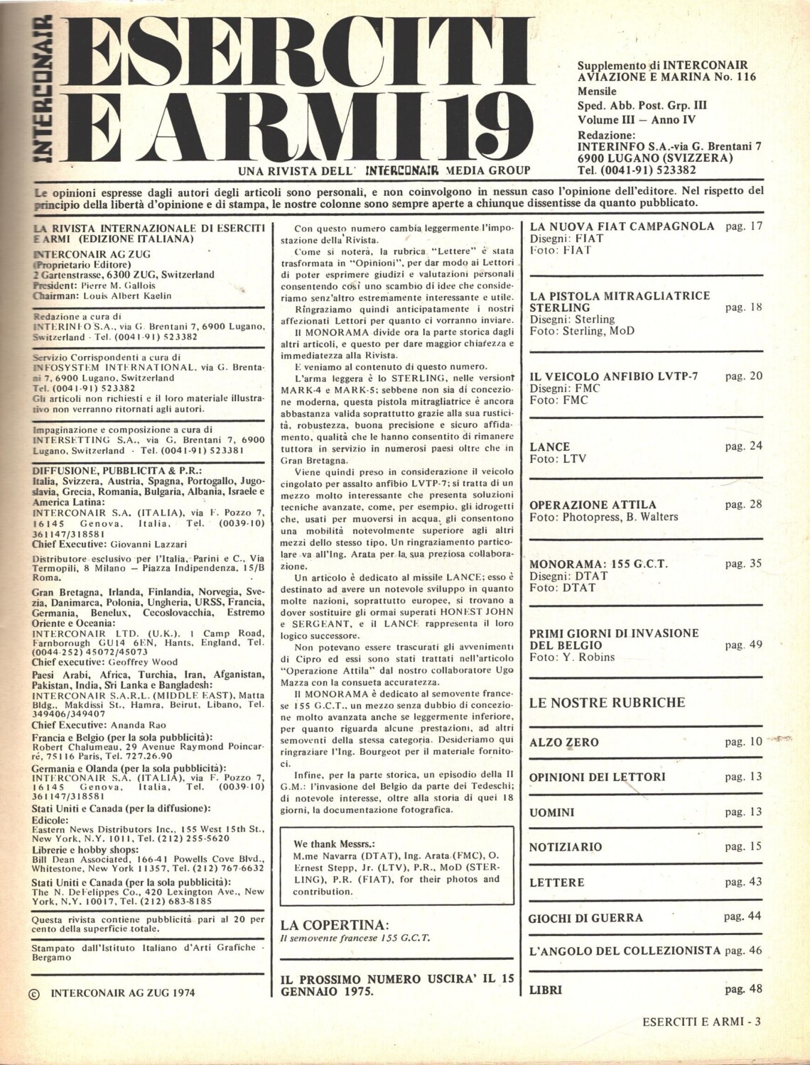 | Titolo: | Rivista Eserciti e Armi n. 19 – Novembre 1974 – In copertina Semovente 155 G.C.T. ed. Interconair (Con Poster) |