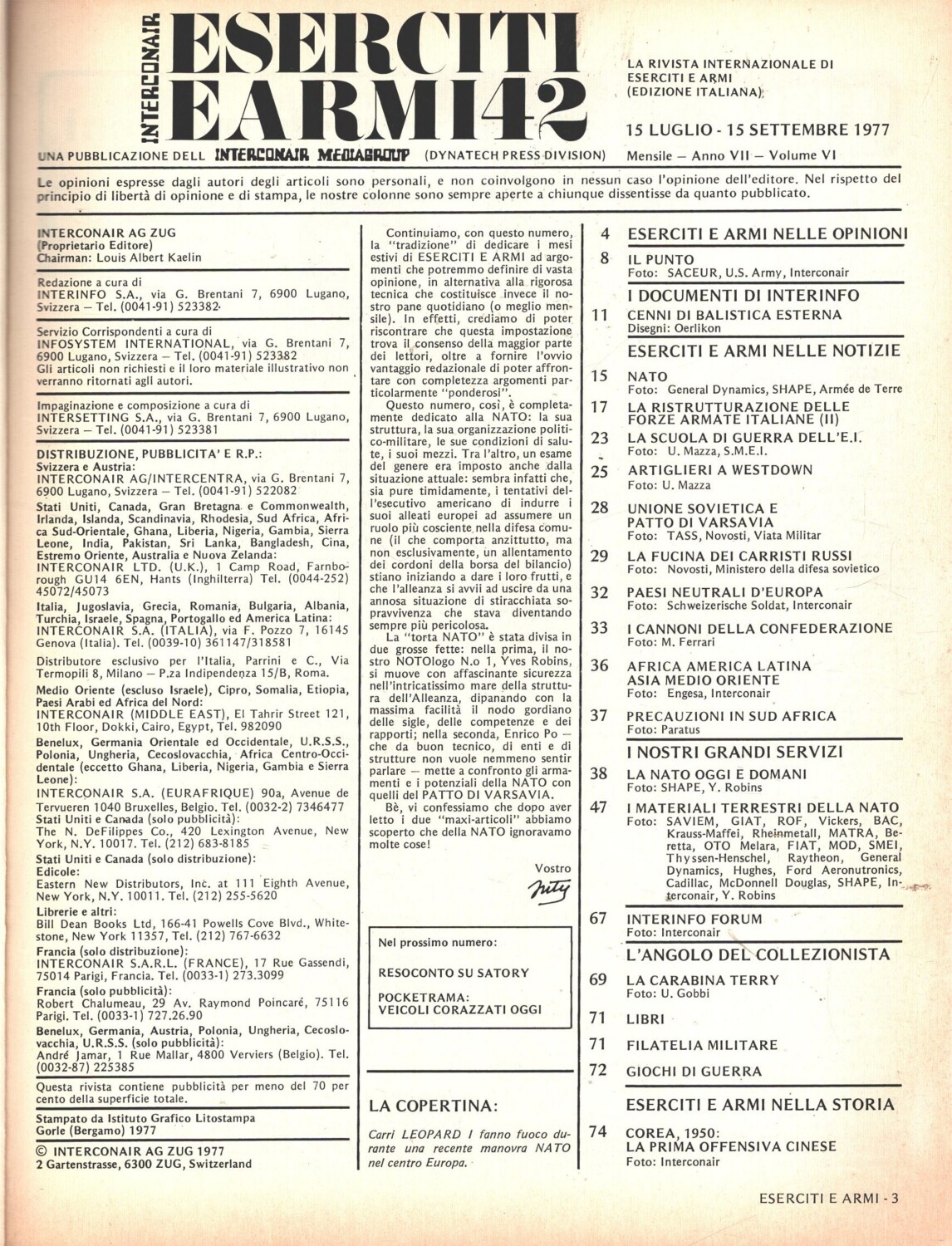 | Titolo: | Rivista Eserciti e Armi n. 42 – Luglio Settembre 1977 – In copertina Carri Leopard I ed. Interconair (Con Poster) |