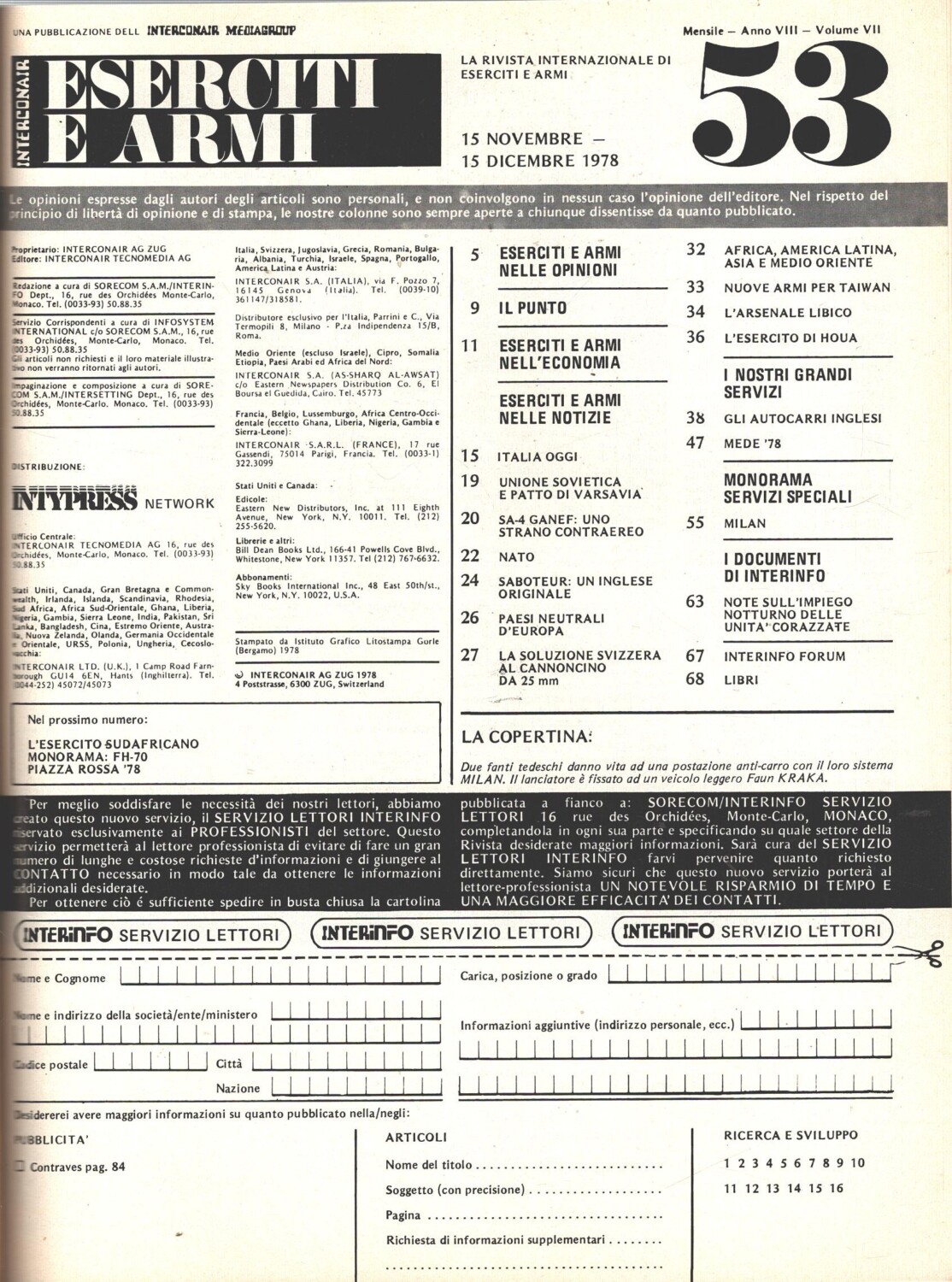 | Titolo: | Rivista Eserciti e Armi n. 53 – Novembre Dicembre 1978 – In copertina Fanti Tedeschi ed. Interconair |