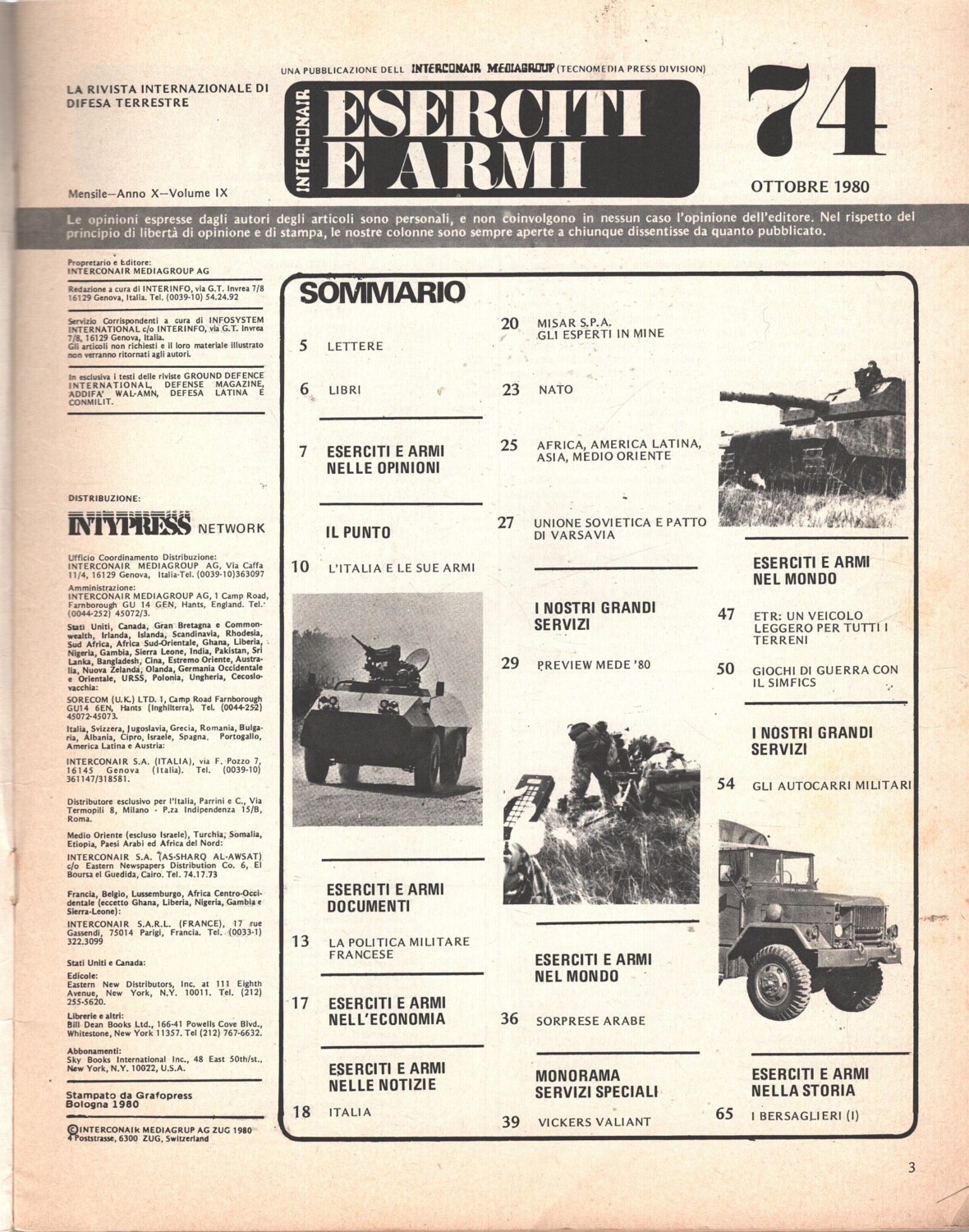 | Titolo: | Rivista Eserciti e Armi n. 74 – Ottobre 1980 ed. Interconair |