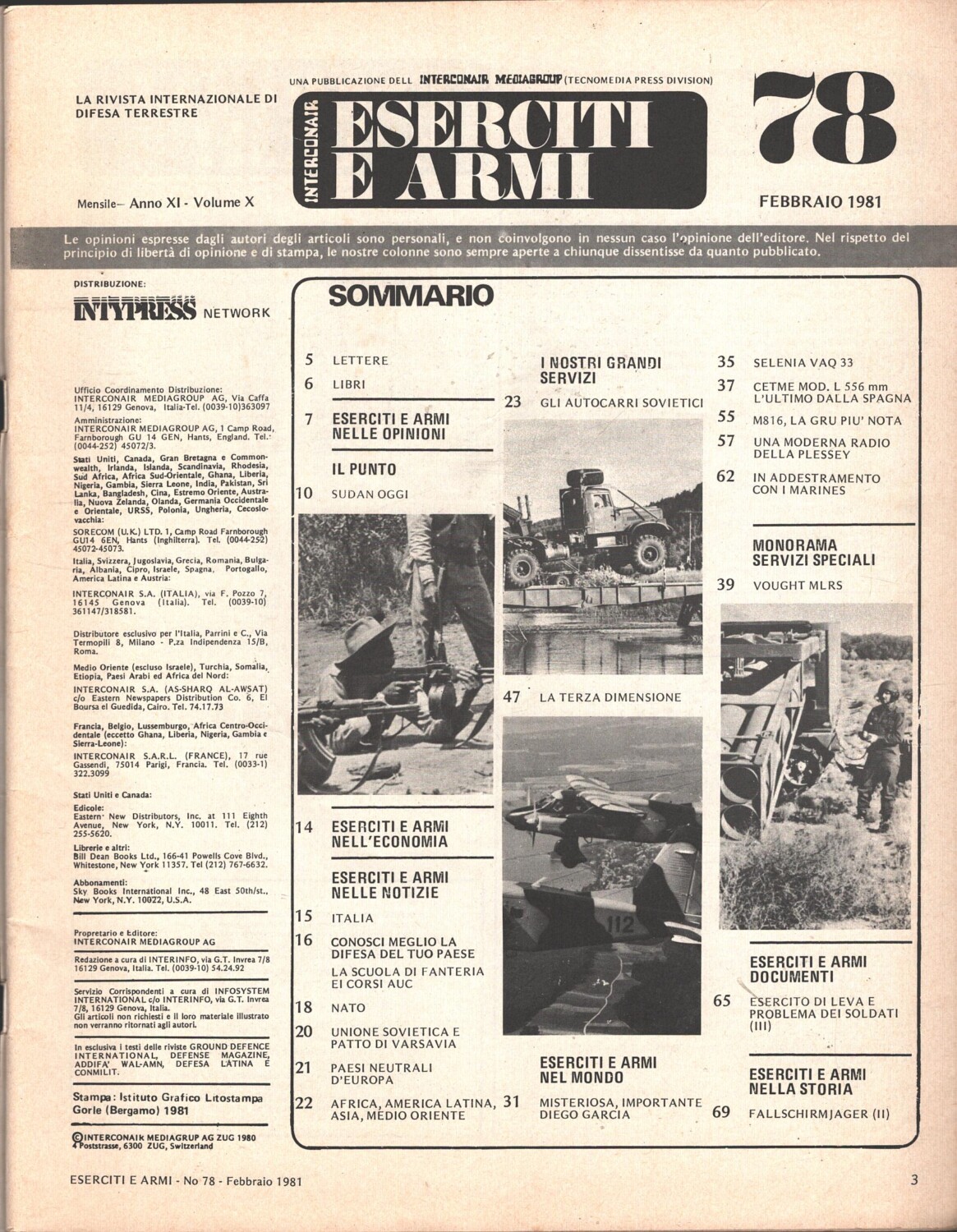 | Titolo: | Rivista Eserciti e Armi n. 78 – Febbraio 1981 – In copertina aereo Pilatus PC-6 Porter ed. Interconair |