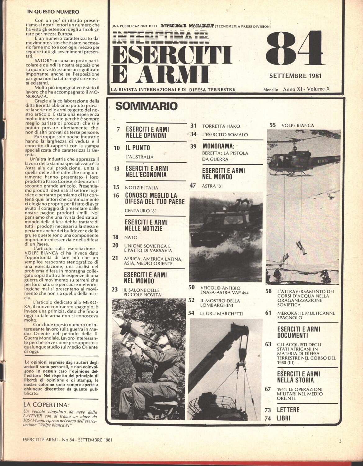 | Titolo: | Rivista Eserciti e Armi n. 84 – Settembre 1981 – In copertina Hagglunds Bv 202 ed. Interconair |