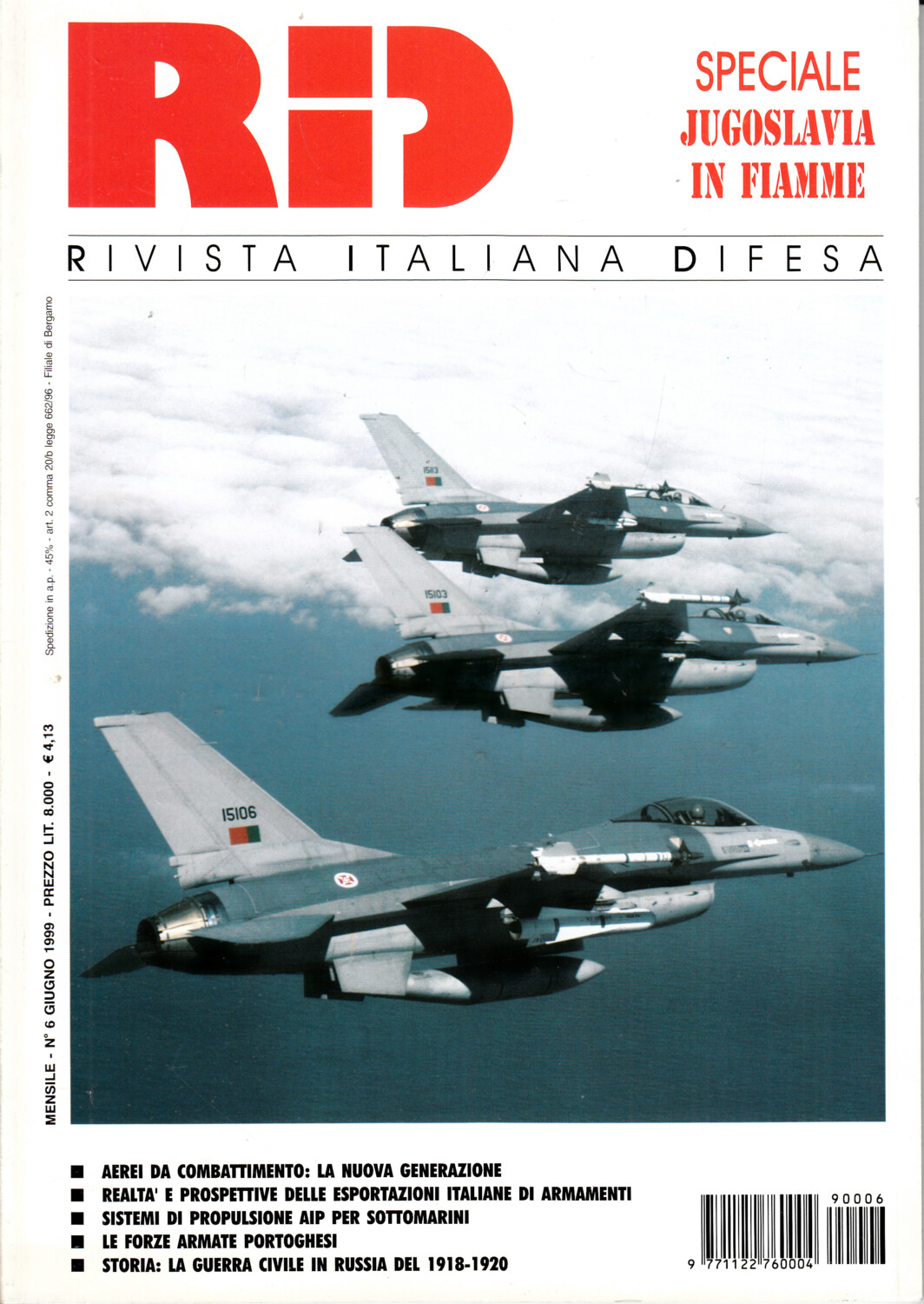 Rivista Italiano Difesa RID n. 6 – Giugno 1999. In copertina F-16A dell’Aeronautica Portoghese