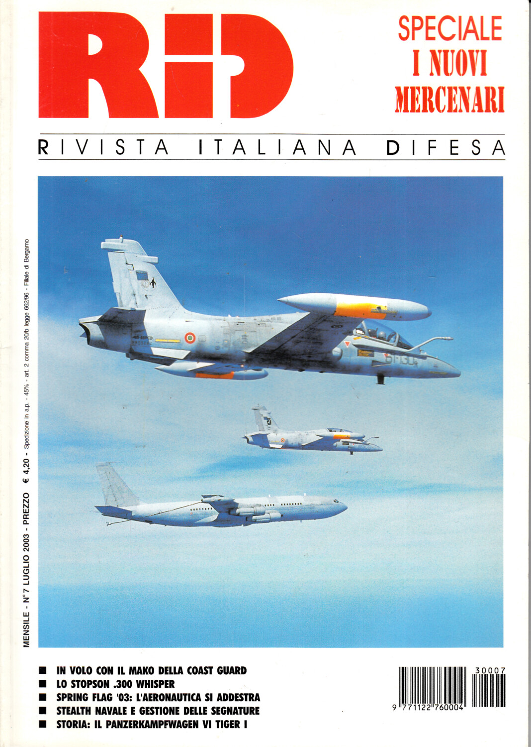 | Titolo: | Rivista Italiano Difesa RID n. 7 – Luglio 2003. In copertina Springflag2003, MB-339CD e B-707 Tanker |