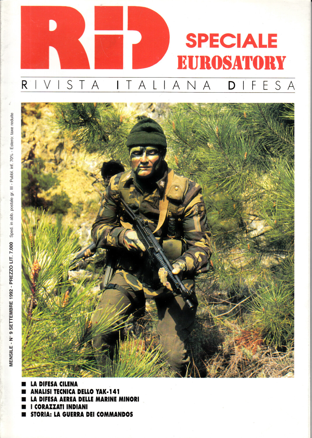 | Titolo: | Rivista Italiano Difesa RID n. 9 – Settembre 1992. In copertina para’ Btg Col Moschin |
