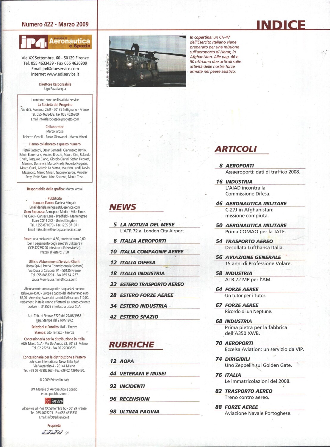 Rivista JP4 Aeronautica e Spazio n. 3 – Marzo 2009 – In copertina CH-47 Esercito Italiano ed. EdiService