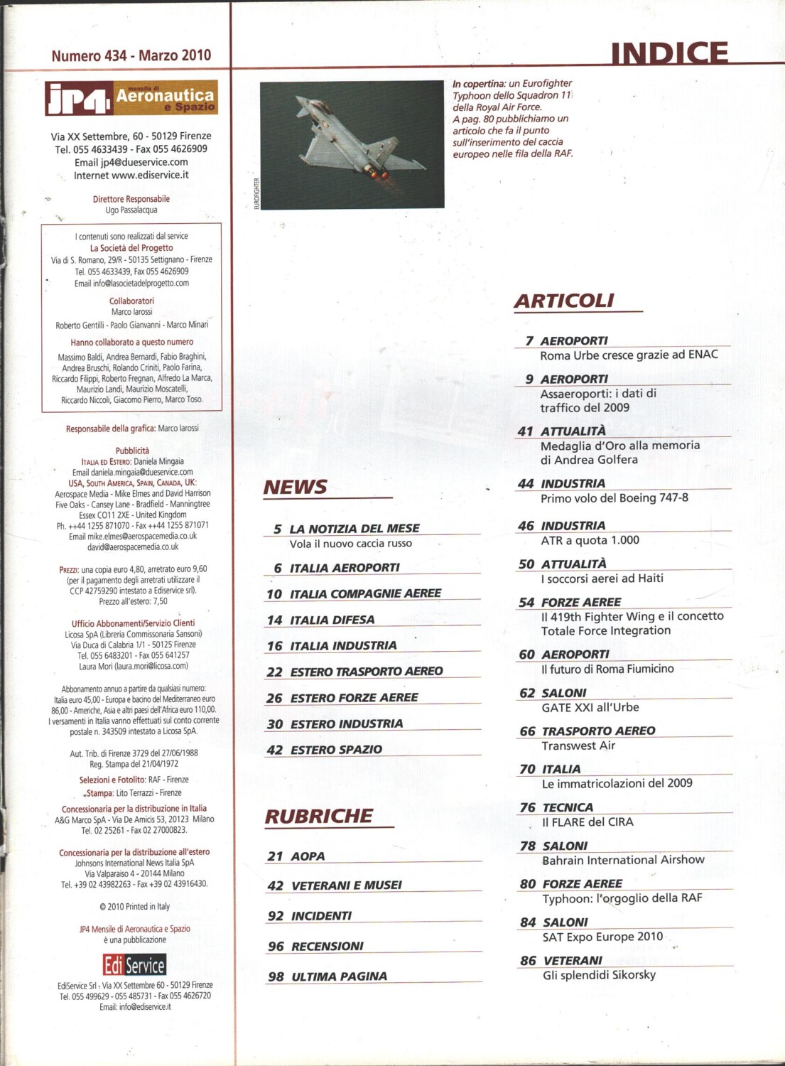 | Titolo: | Rivista JP4 Aeronautica e Spazio n. 3 – Marzo 2010 – In copertina Eurofighter Typhoon ed. EdiService |