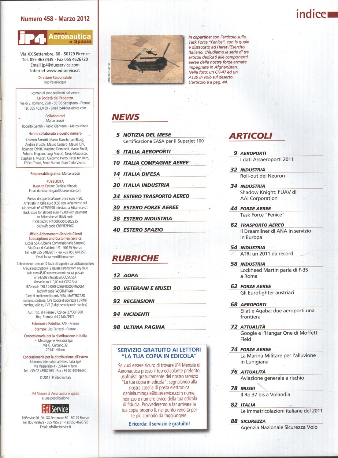 | Titolo: | Rivista JP4 Aeronautica e Spazio n. 3 – Marzo 2012 – In copertina CH-47 e A129 ed. EdiService |