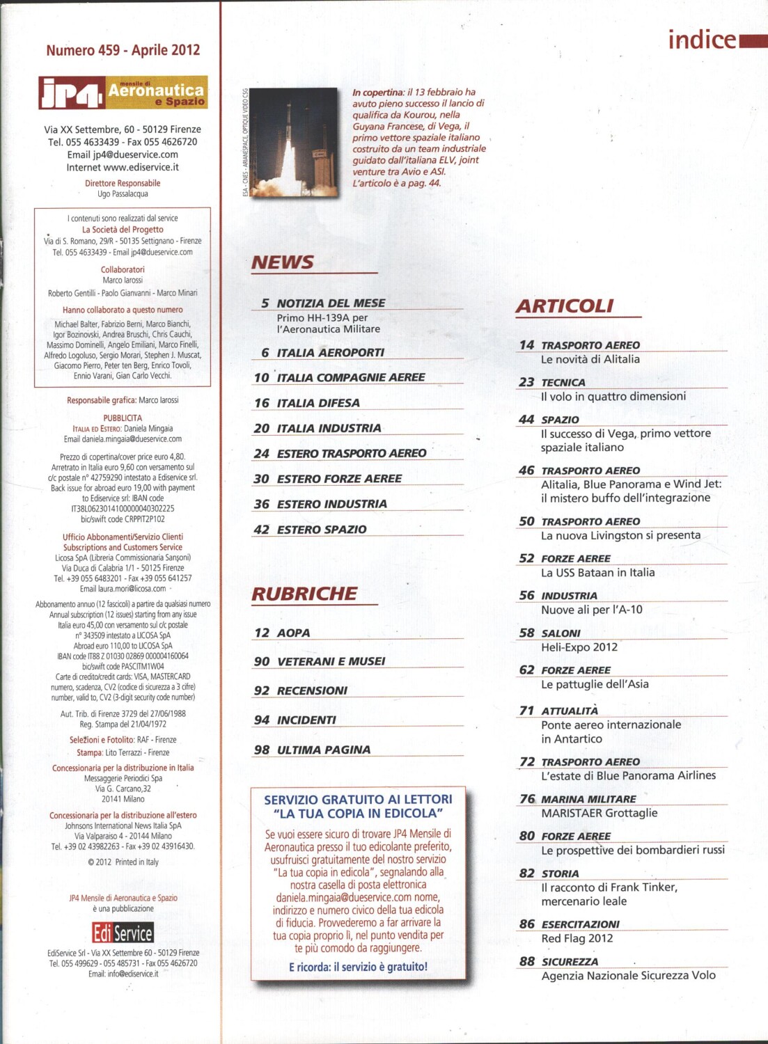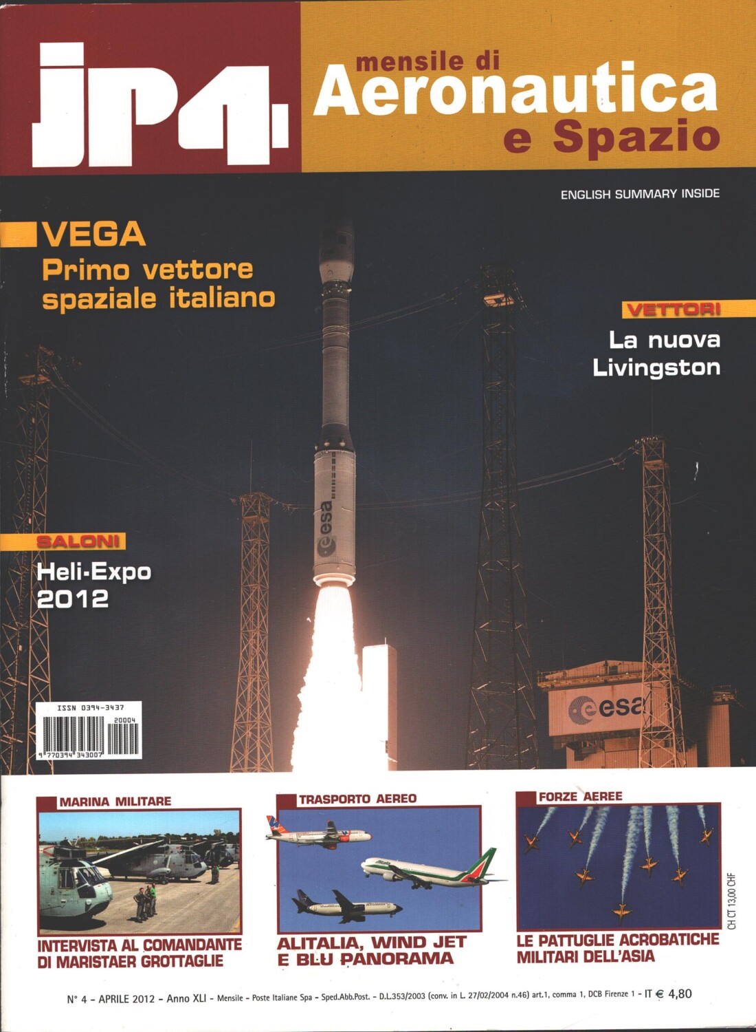 Rivista JP4 Aeronautica e Spazio n. 4 – Aprile 2012 – In copertina Vega ed. EdiService
