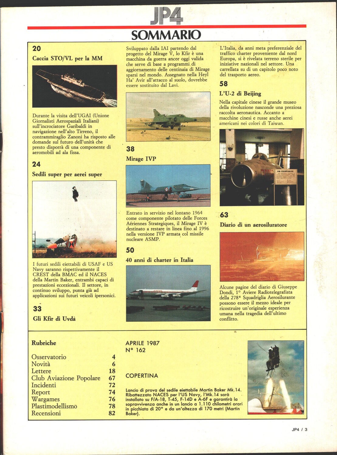 Rivista JP4 Aeronautica – n. 4 – Aprile 1987 – In copertina Prova sedile eiettabile Martin Baker Mk.14 ed. A.I.