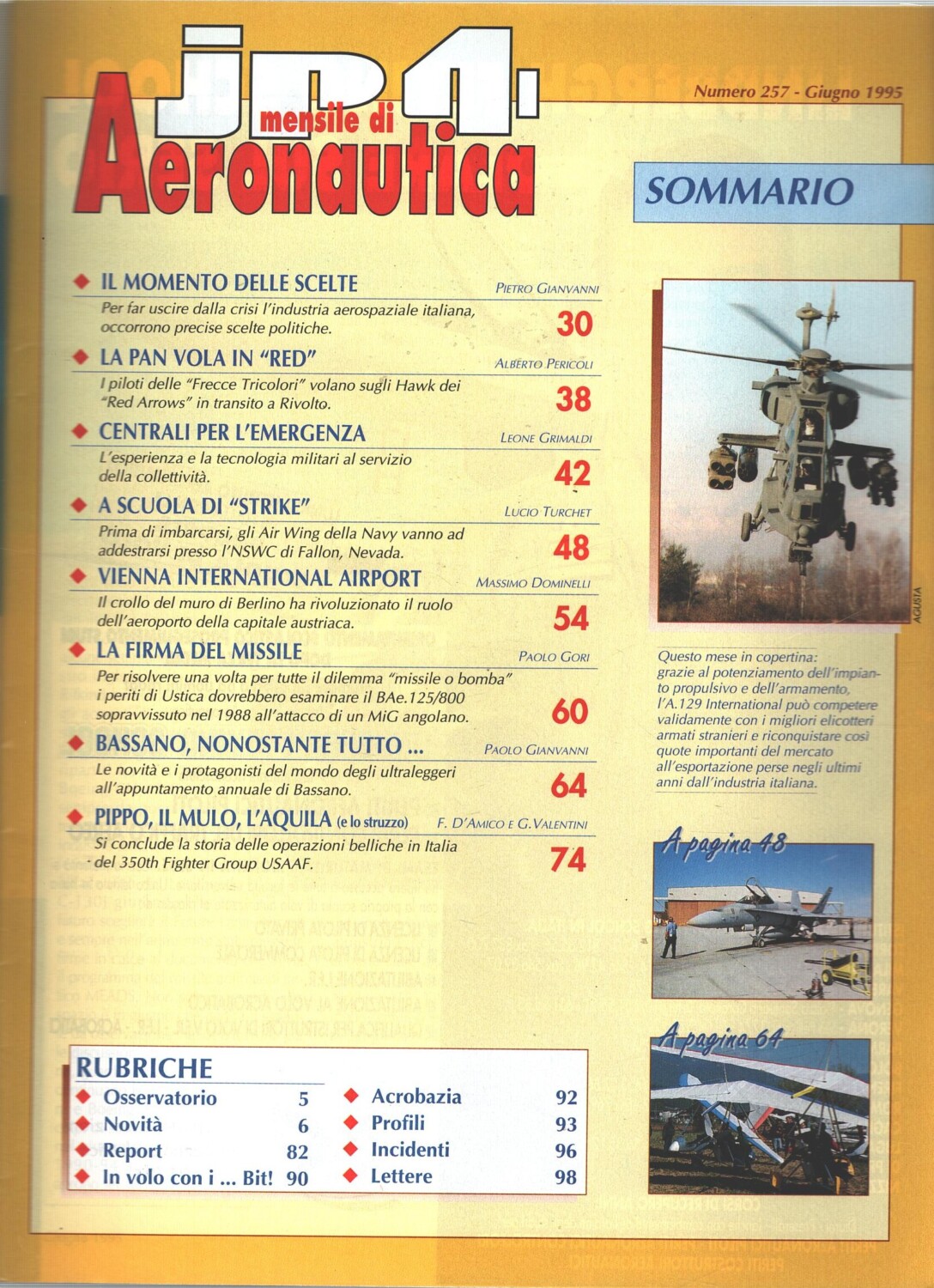 | Titolo: | Rivista JP4 Aeronautica n. 6 – Giugno 1995 – In copertina Agusta A129 Mangusta ed. A.I. |