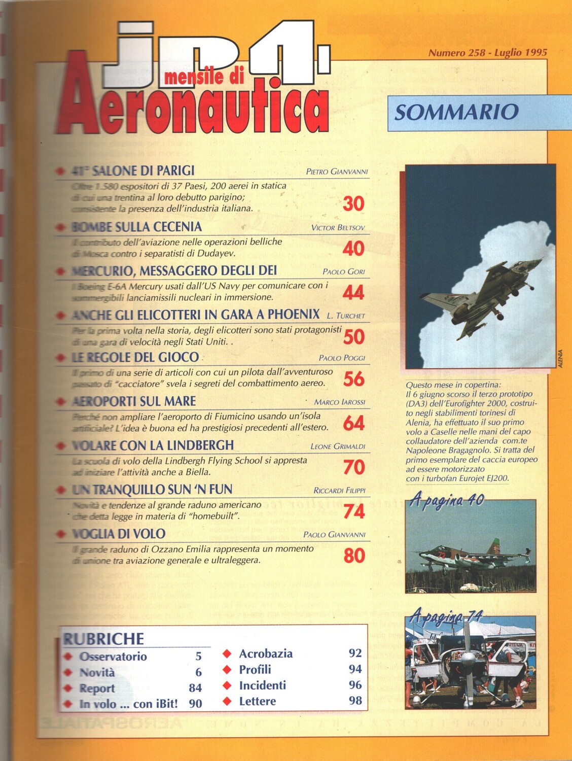 | Titolo: | Rivista JP4 Aeronautica n. 7 – Luglio 1995 – In copertina Eurofighter 2000 ed. A.I. |