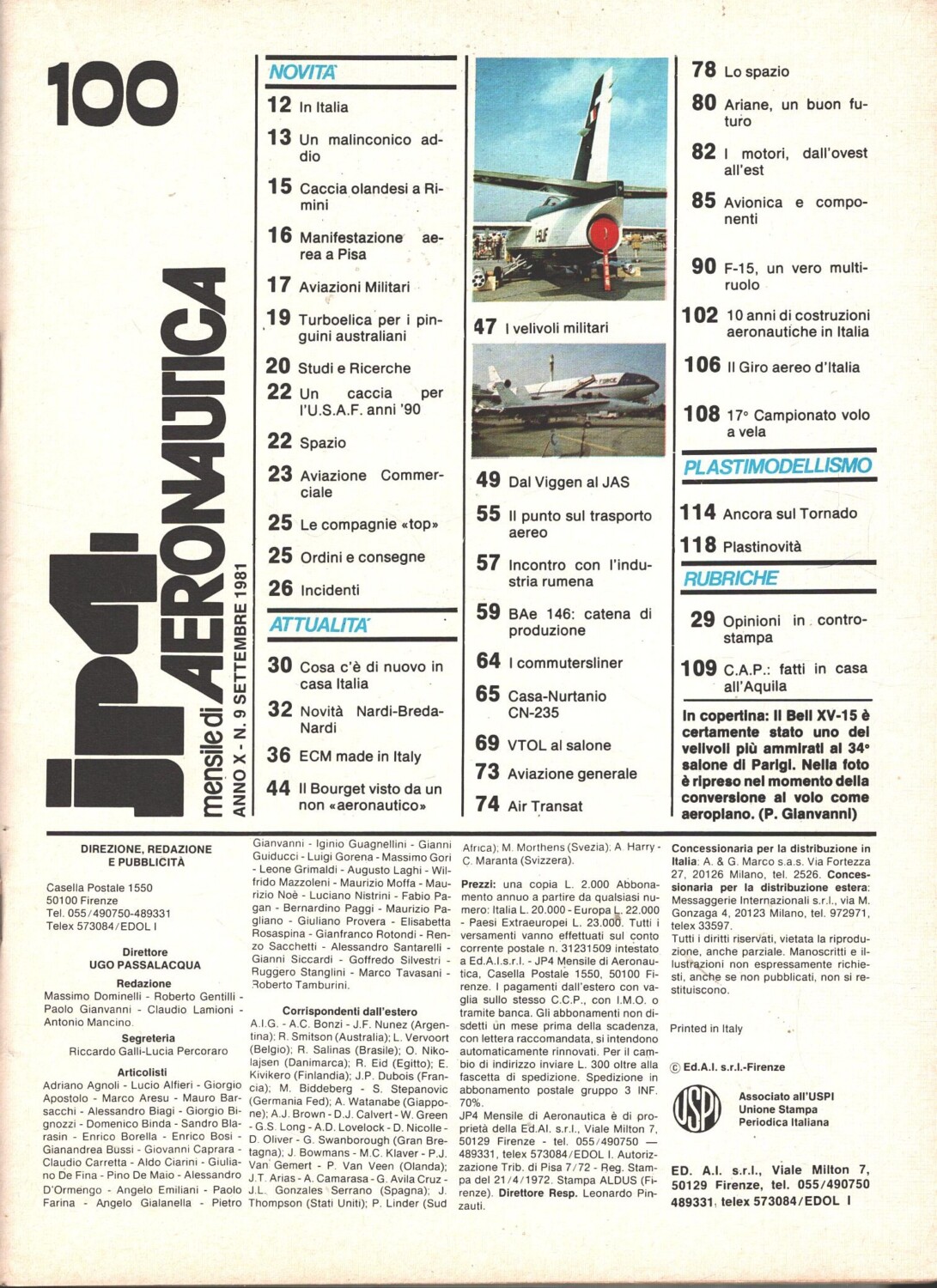 | Titolo: | Rivista JP4 Aeronautica n. 9 – Settembre 1981 ed. A.I. |