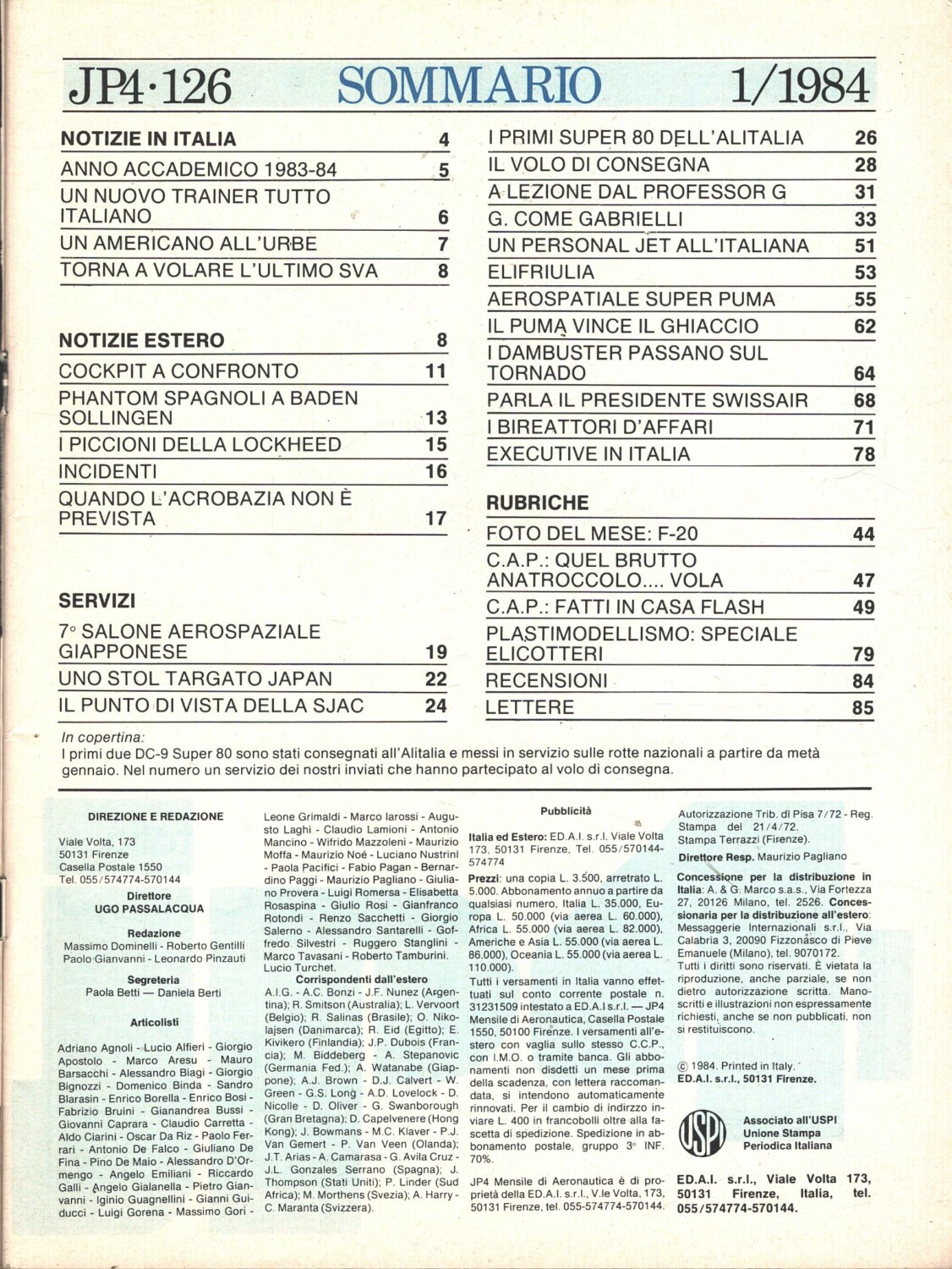 | Titolo: | Rivista JP4 Aeronautica n. 1 – Gennaio 1984 ed. A.I. |
