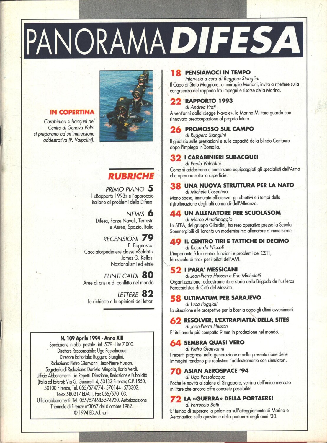 | Titolo: | Rivista Panorama Difesa n. 109 – Aprile 1994 – In copertina Carabinieri subacquei ed. ED.A.I. |