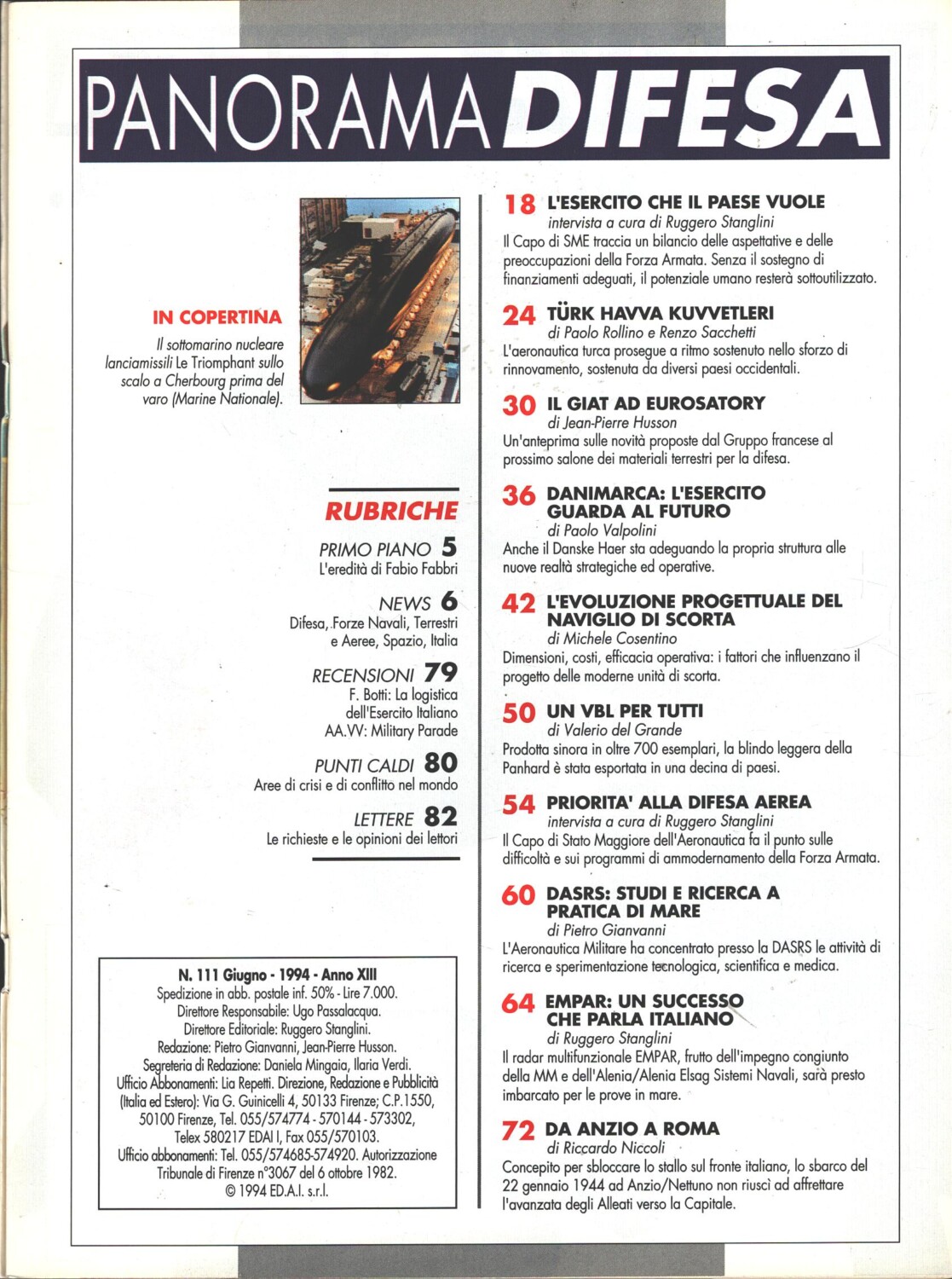 | Titolo: | Rivista Panorama Difesa n. 111 – Giugno 1994 – In copertina sottomarino Le Triomphant ed. ED.A.I. |