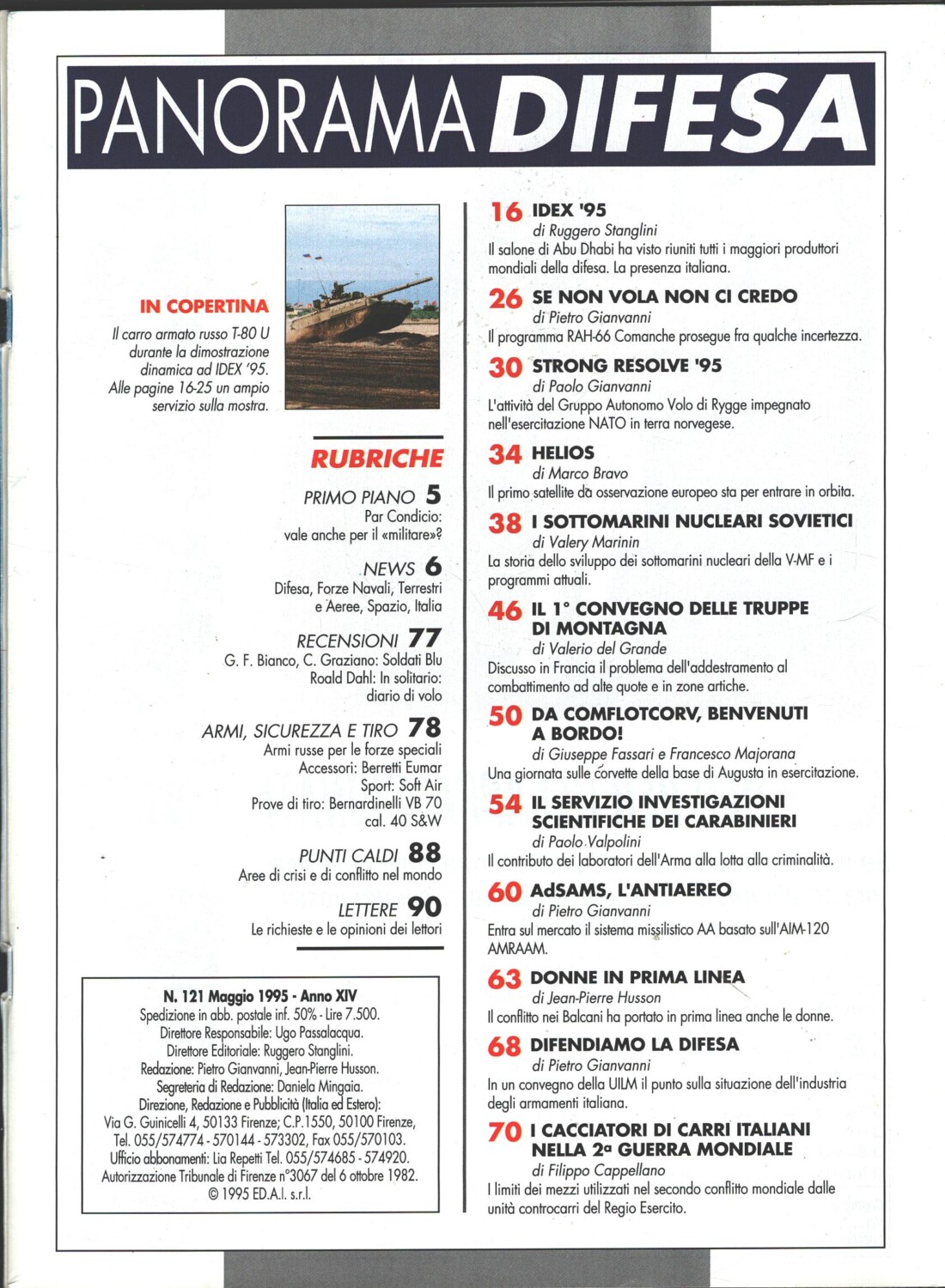 Rivista Panorama Difesa n. 121 – Maggio 1995 – In copertina T-80 U carro armato russo ed. ED.A.I.
