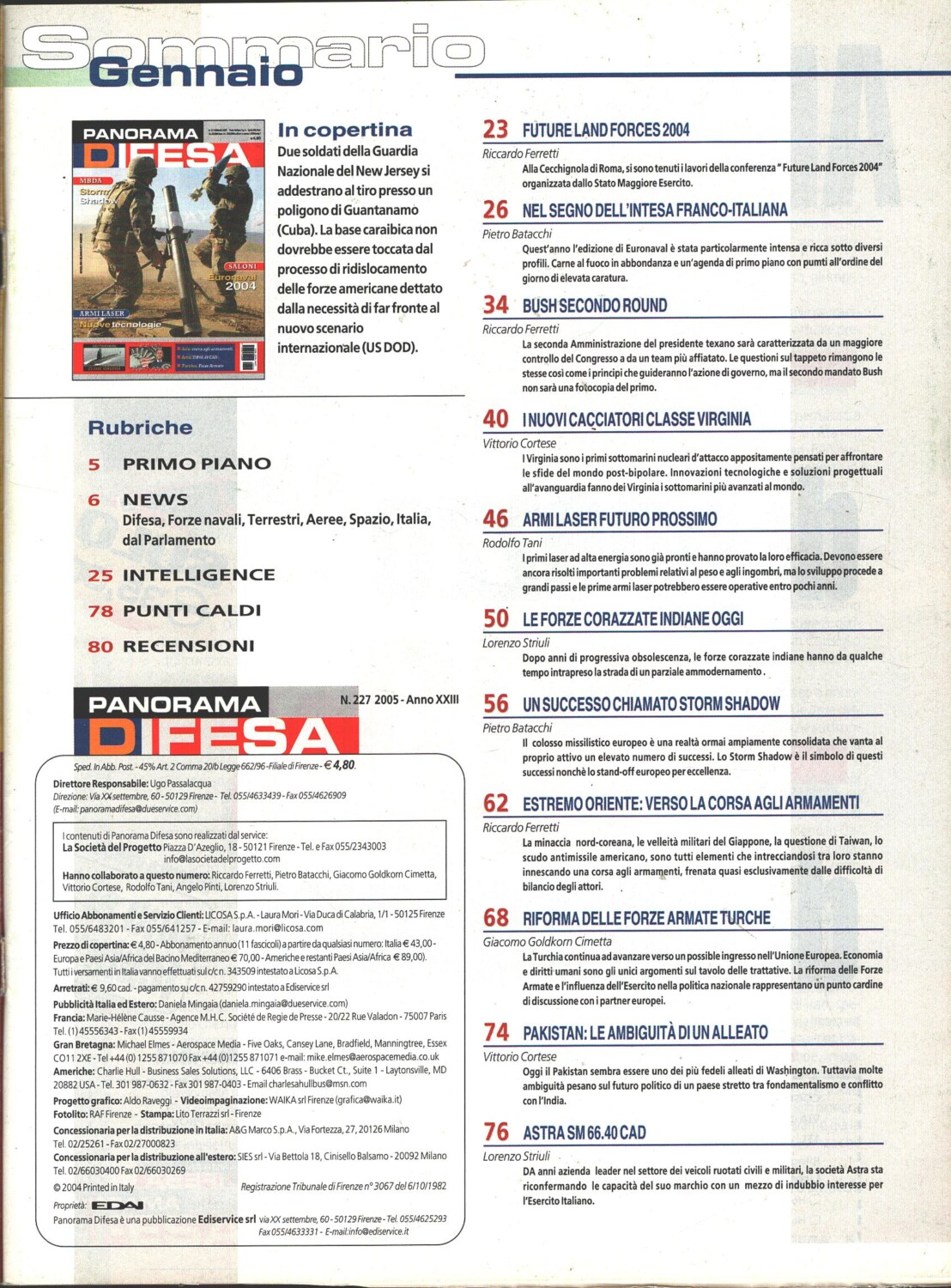 | Titolo: | Rivista Panorama Difesa n. 227 – Gennaio 2005 – In copertina Guardia Nazionale del New Jersey ed. ED.A.I. |