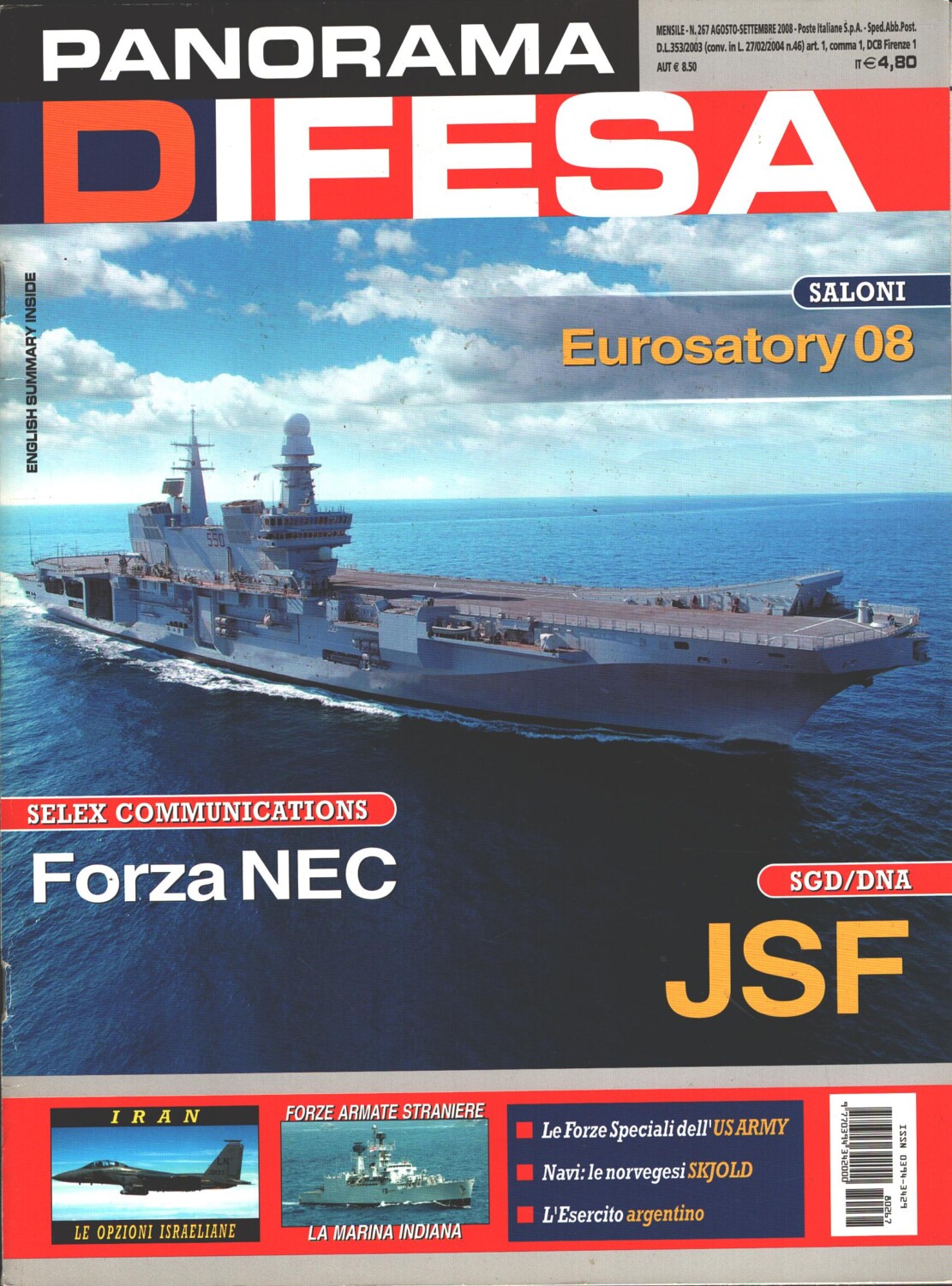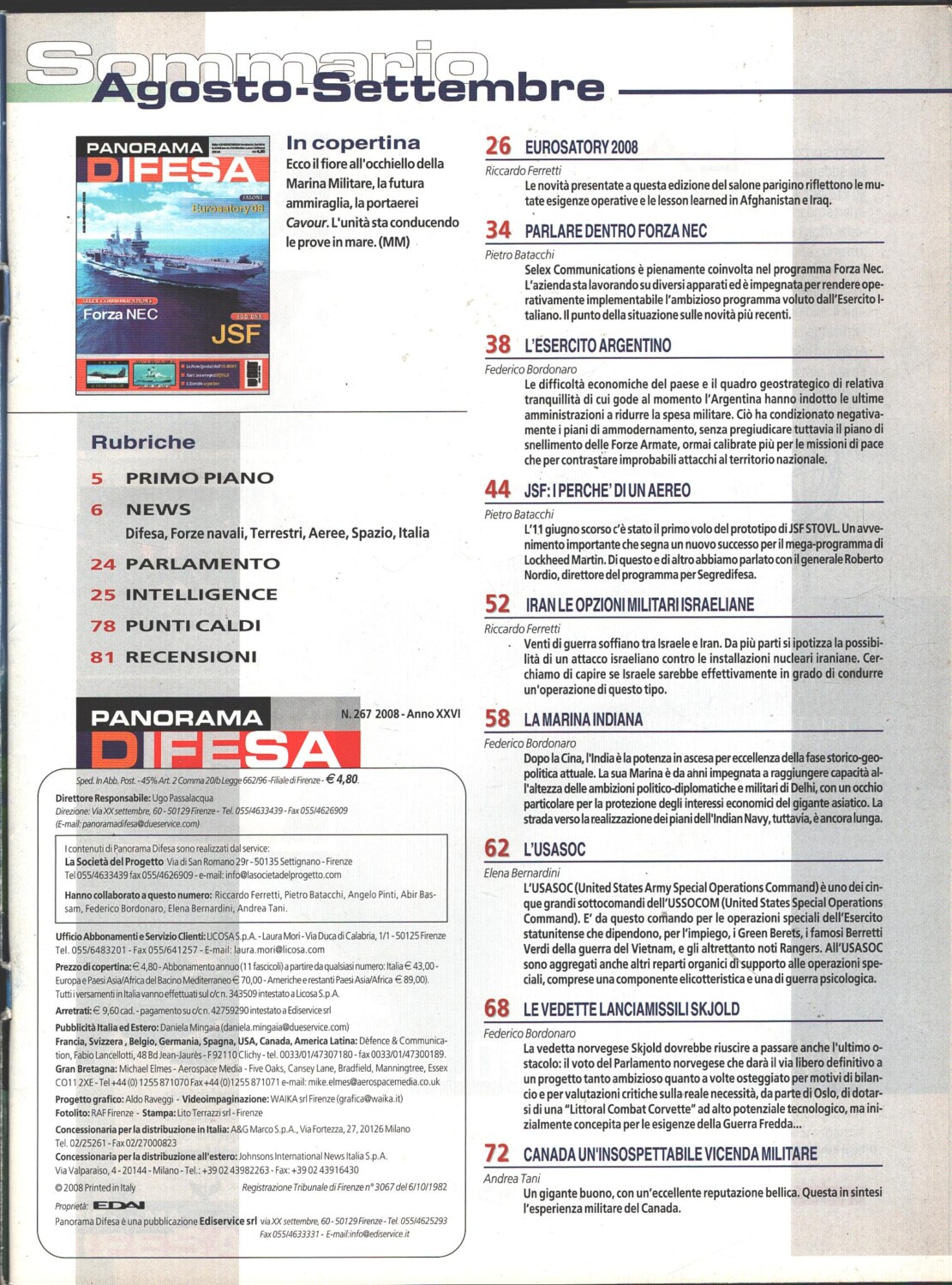 | Titolo: | Rivista Panorama Difesa n. 267 – Agosto Settembre 2008 – In copertina ammiraglia Cavour ed. ED.A.I. |