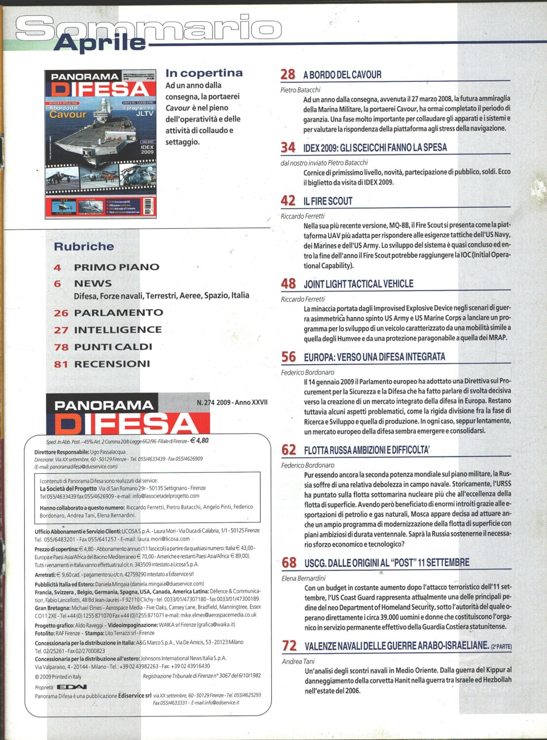 Rivista Panorama Difesa n. 274 – Aprile 2009 – In copertina portaerei Cavour ed. ED.A.I.