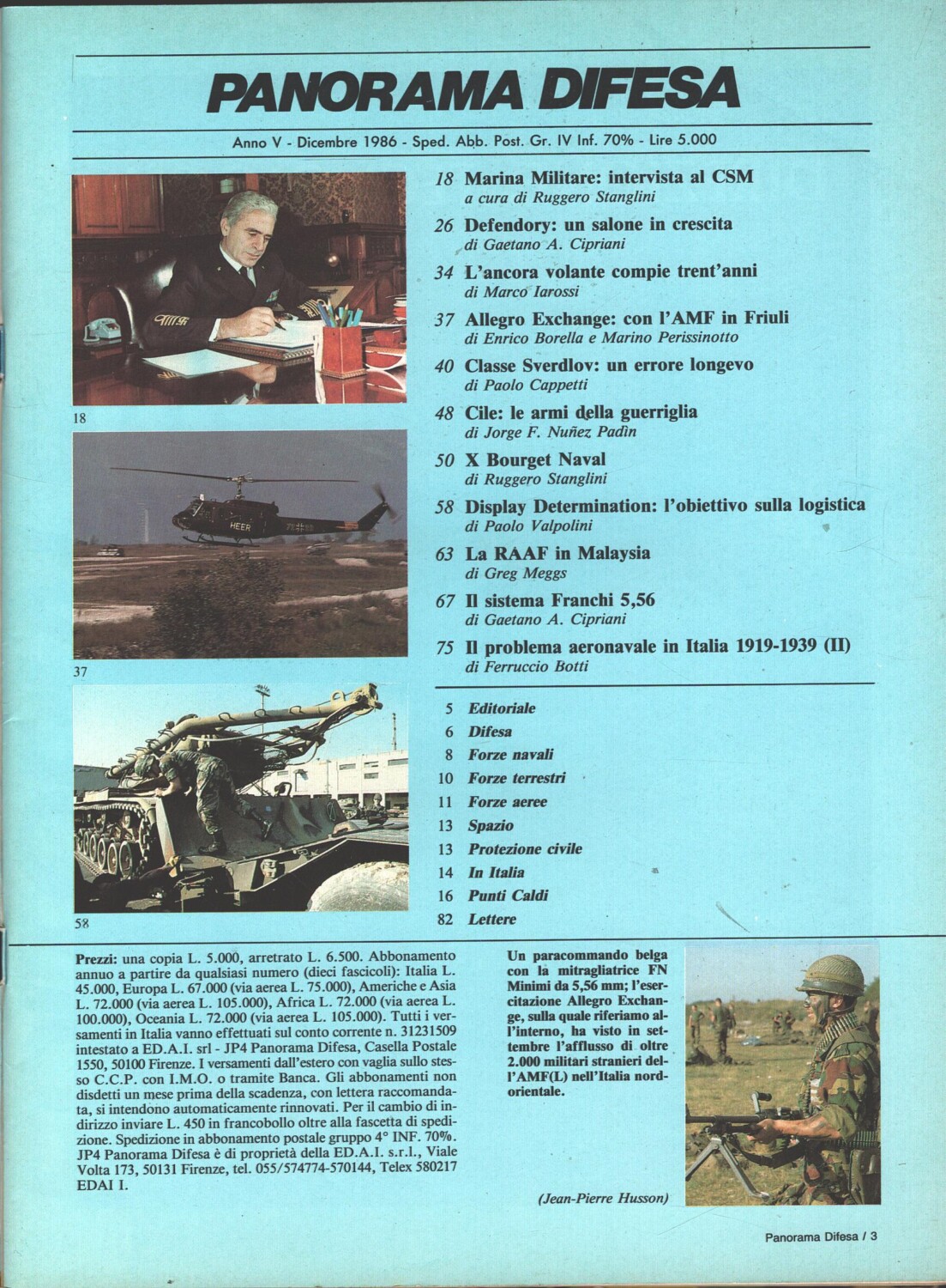 | Titolo: | Rivista Panorama Difesa n. 30 – Dicembre 1986 – In copertina Paracommando Belga con mitragliatrice ed. ED.A.I. |