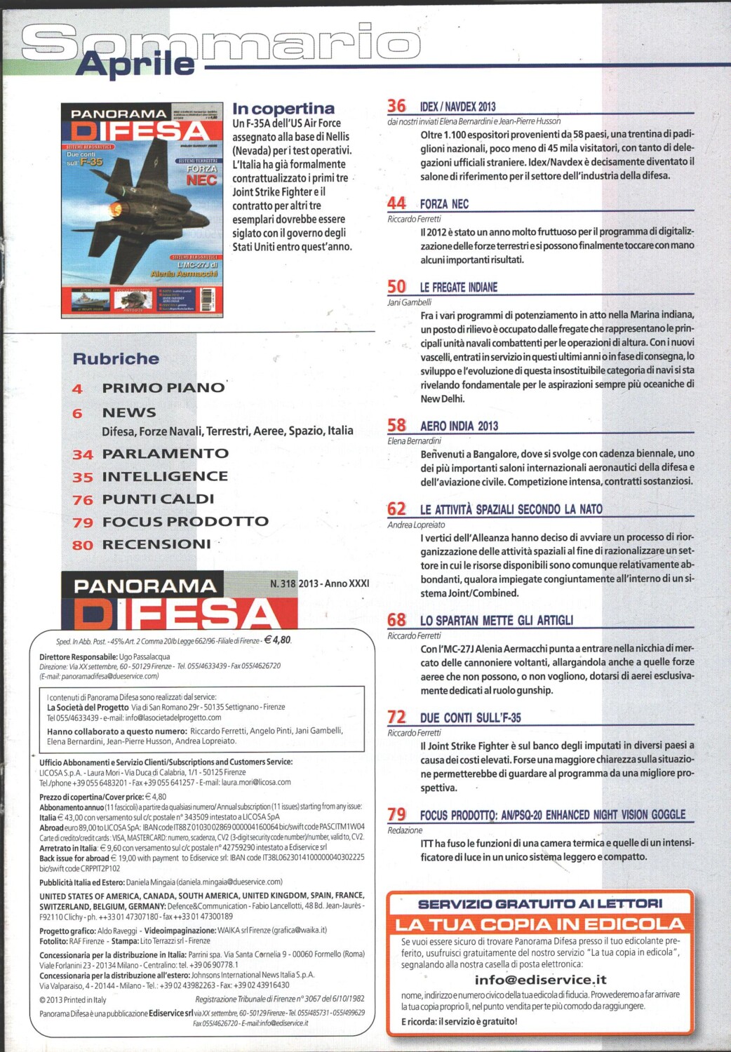 | Titolo: | Rivista Panorama Difesa n. 318 – Aprile 2013 – In copertina F-35A ed. ED.A.I. |