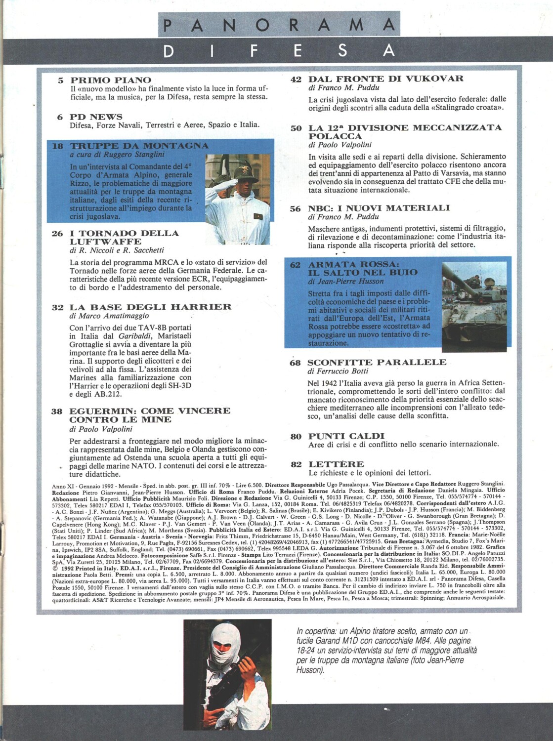 | Titolo: | Rivista Panorama Difesa n. 84 – Gennaio 1992 – In copertina Alpino tiratore scelto ed. ED.A.I. |