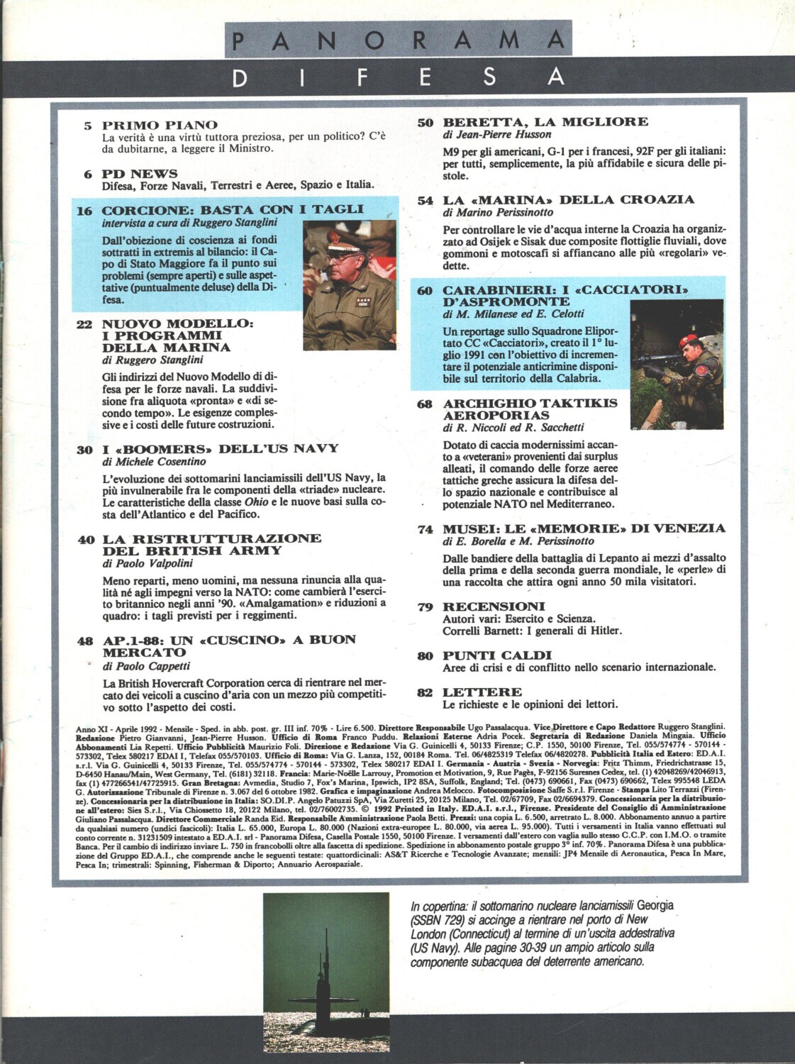 | Titolo: | Rivista Panorama Difesa n. 87 – Aprile 1992 – In copertina Georgia SSBN 729 sottomarino nucleare ed. ED.A.I. |