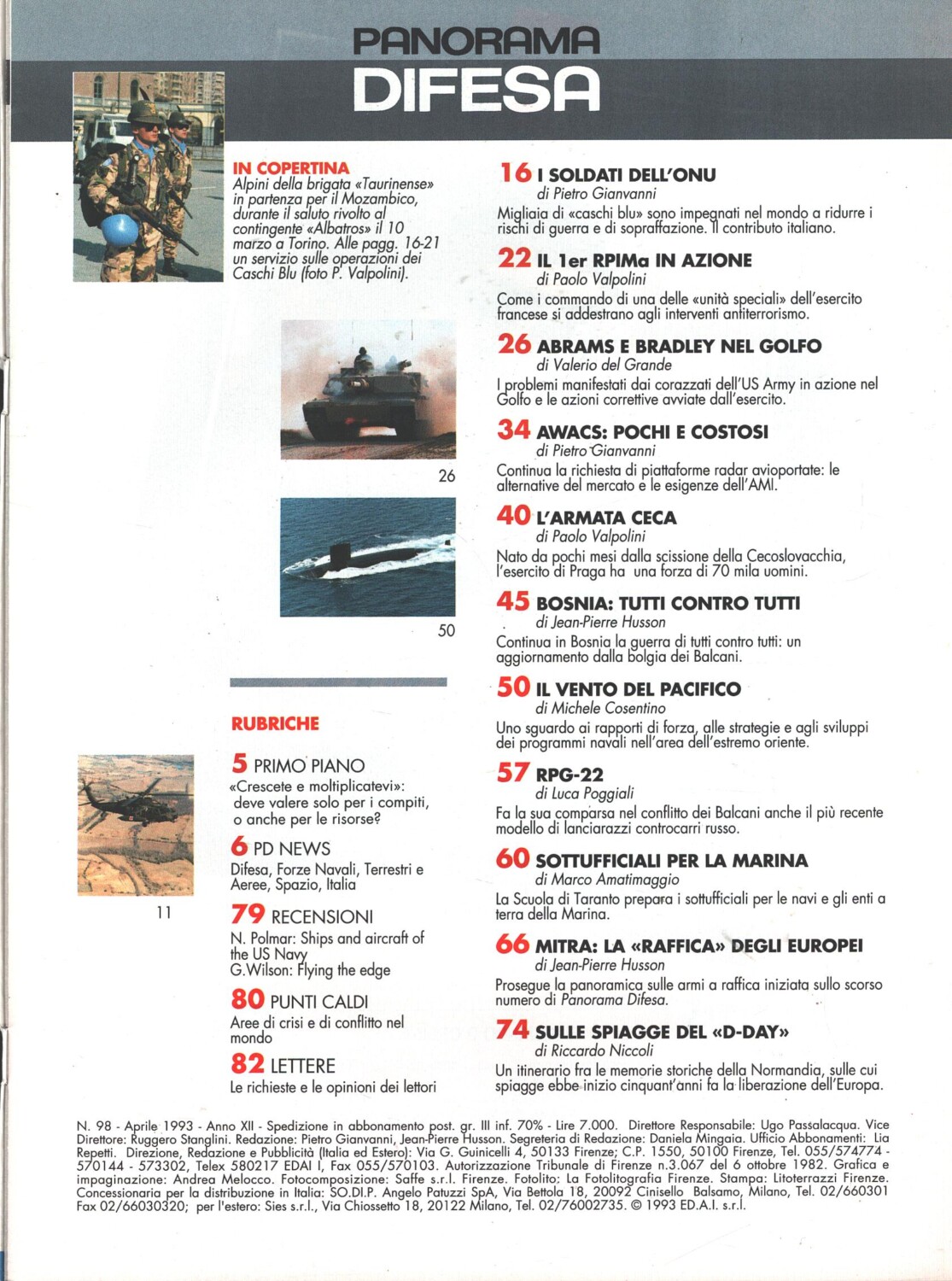| Titolo: | Rivista Panorama Difesa n. 98 – Aprile 1993 – In copertina Alpini Taurinense ed. ED.A.I. |