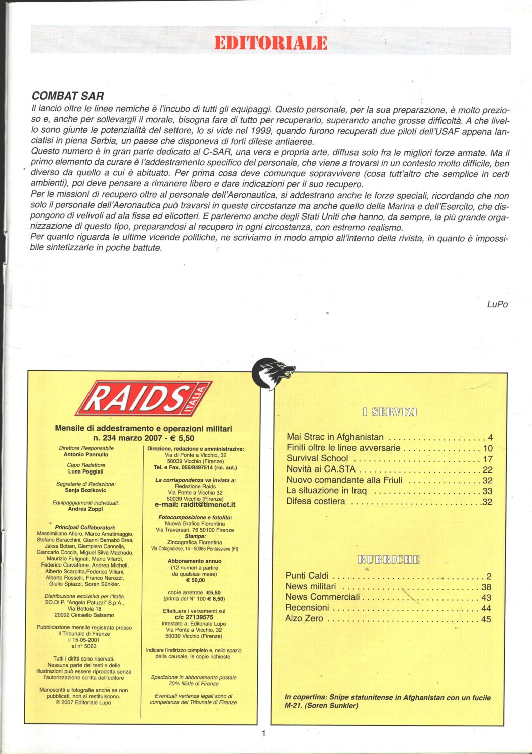 | Titolo: | Rivista Raids Italia n. 234 – Marzo 2007 – In copertina Snipe statunitense ed. Editoriale Lupo |