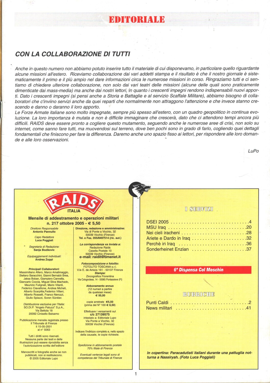 | Titolo: | Rivista Raids n. 217 – Ottobre 2005 – In copertina Paracadutisti italiani ed. Albertelli |