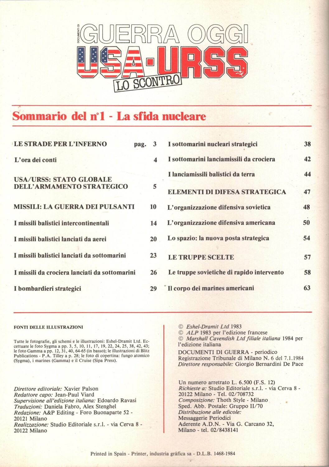 | Titolo: | Rivista Guerra Oggi n. 1 – 1984 USA-URSS ed. Marshall Cavendish Ltd |
