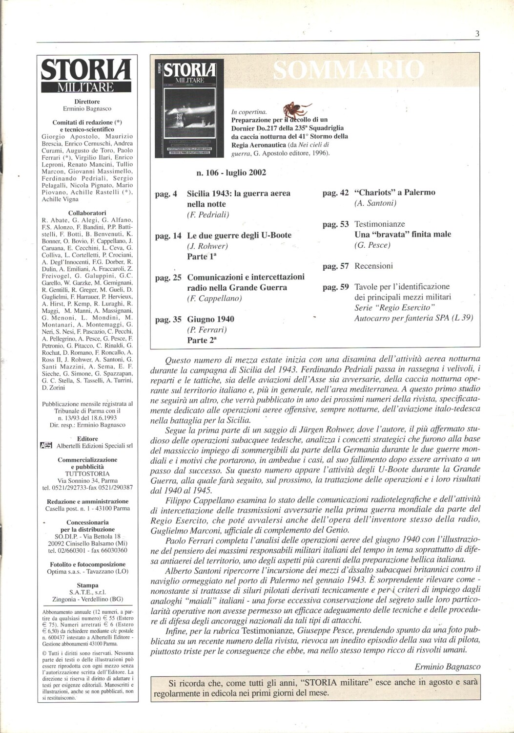 | Titolo: | Rivista Storia Militare n. 106 – Luglio 2002 – In copertina Dornier Do.217 ed. Albertelli |