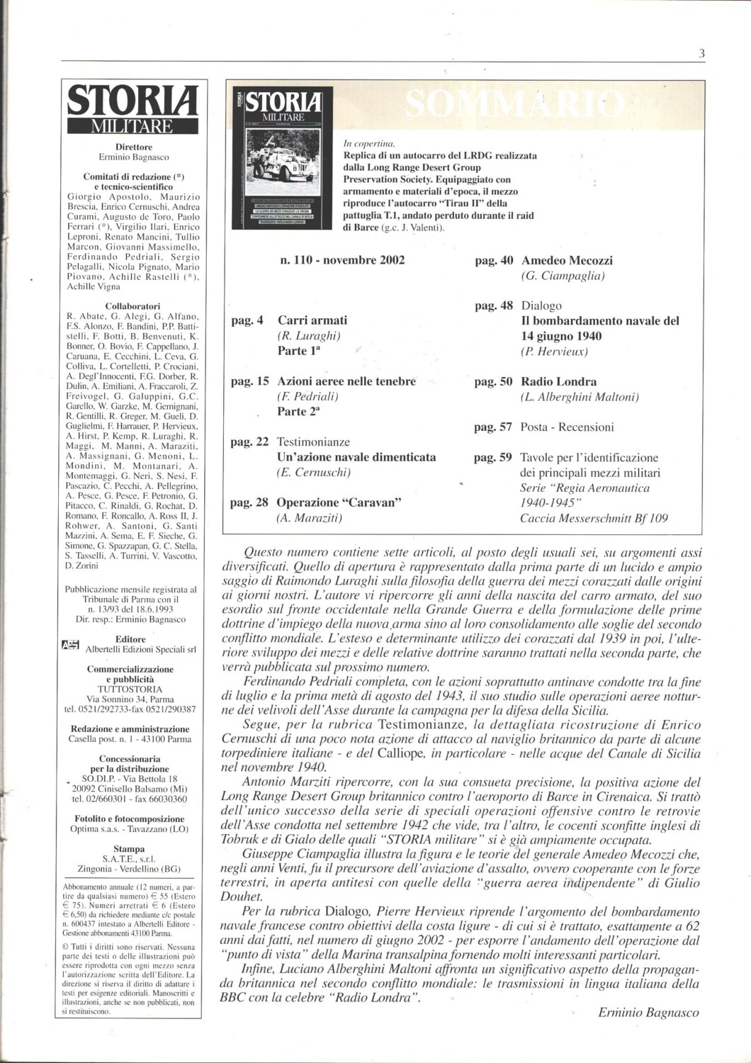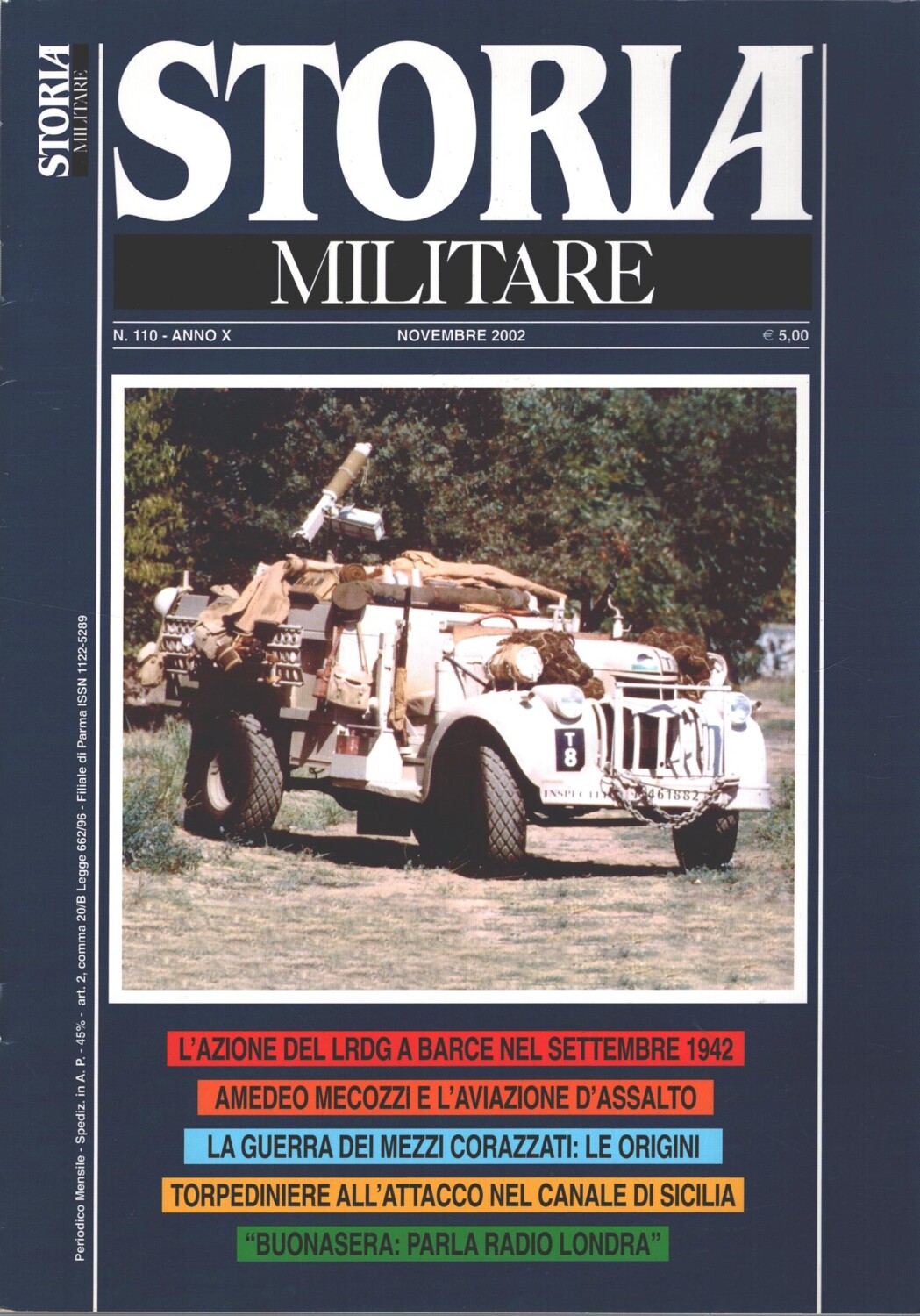 | Titolo: | Rivista Storia Militare n. 110 – Novembre 2002 – In copertina autorarro Tirau II riproduzione ed. Albertelli |