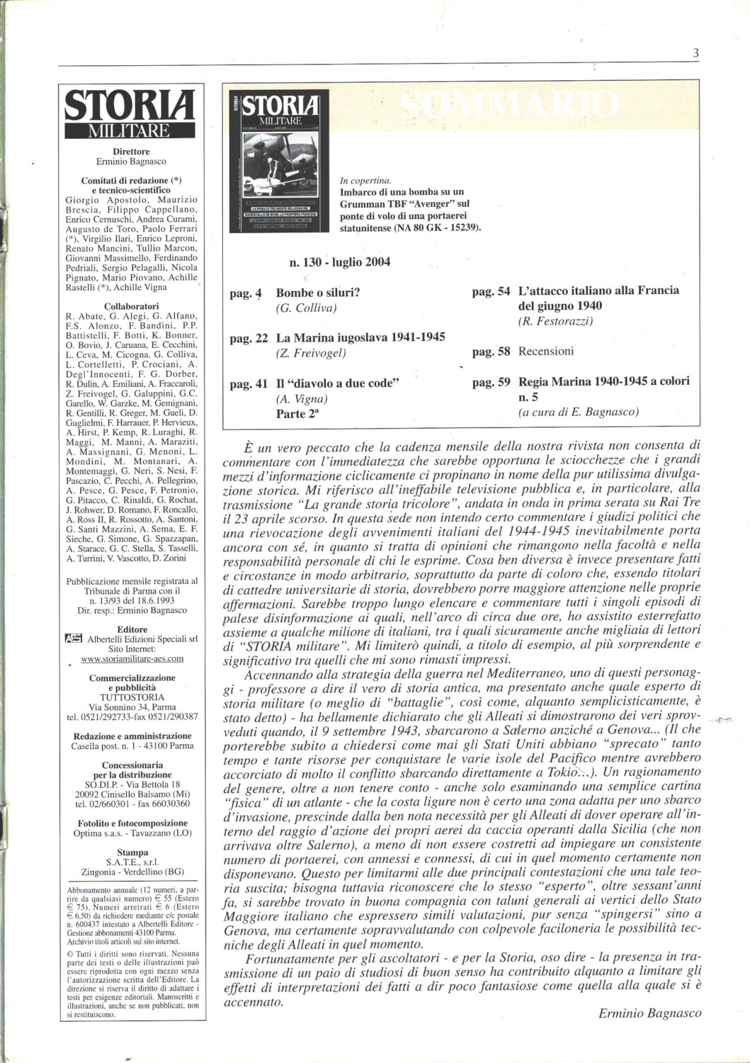| Titolo: | Rivista Storia Militare n. 130 – Luglio 2004 – In copertina Grumman TBF Avenger inbarco bomba ed. Albertelli |
