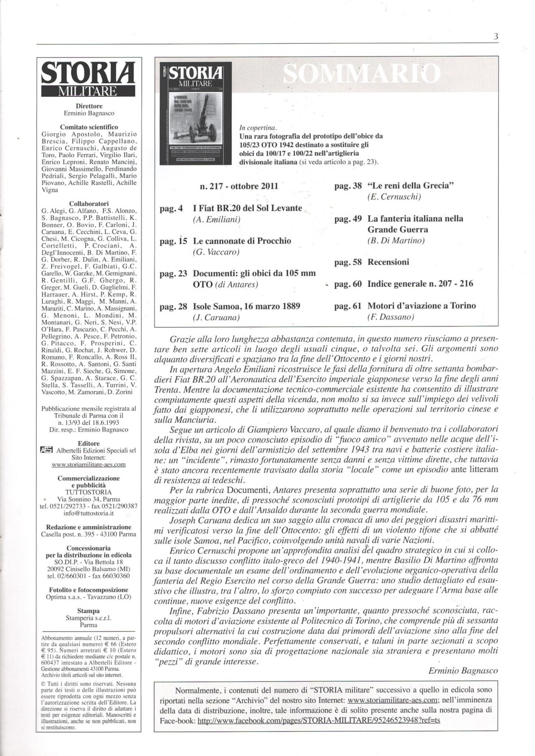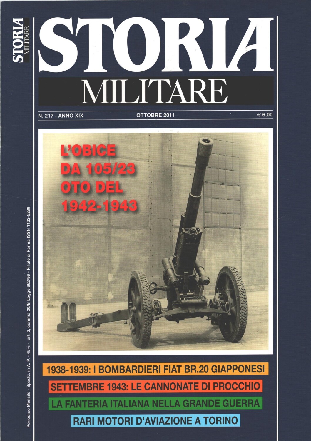 Rivista Storia Militare n. 217 – Ottobre 2011 – In copertina Prototipo obice 105/23 OTO 1942 ed. Albertelli