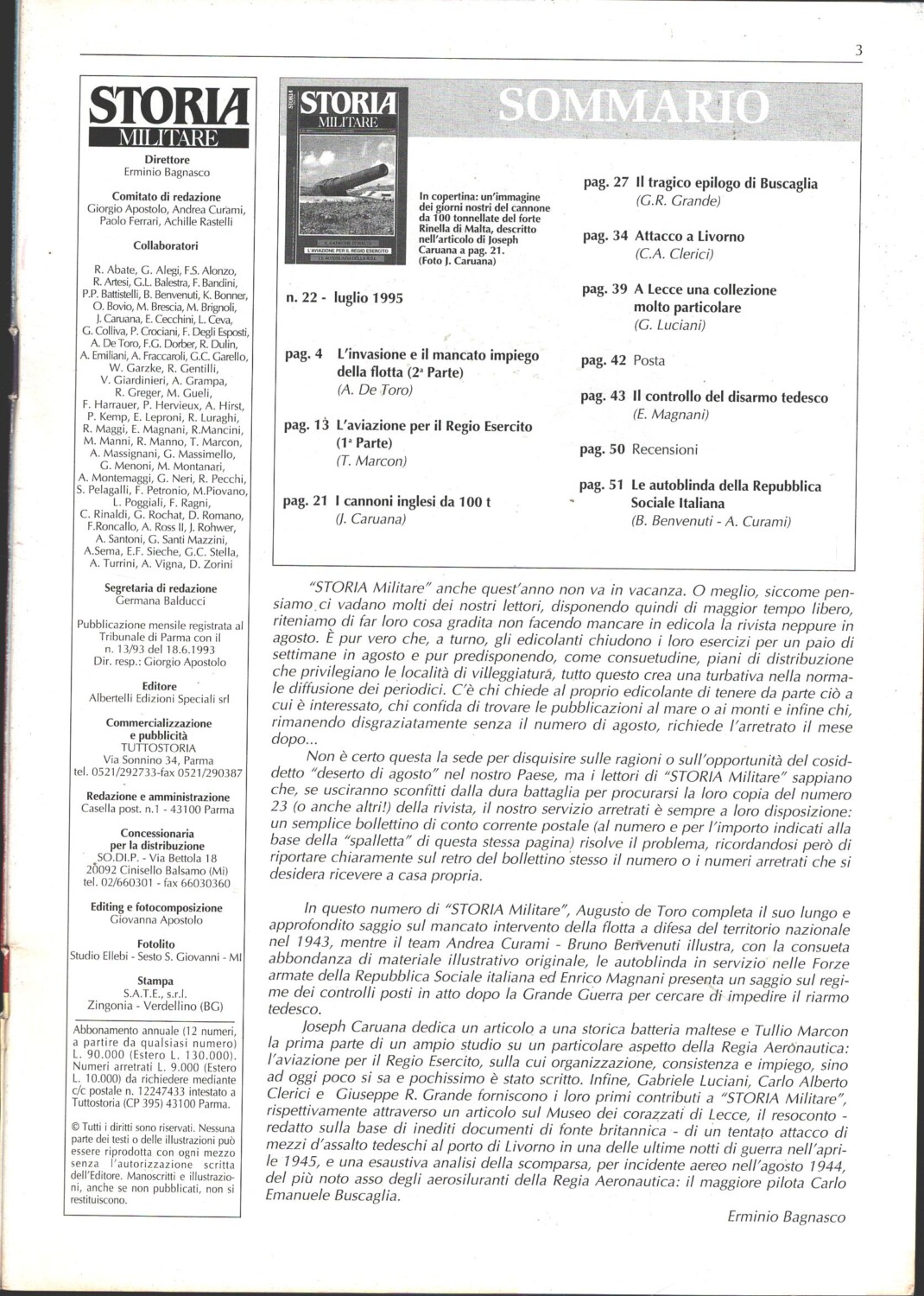 | Titolo: | Rivista Storia Militare n. 22 – Luglio 1995 – In copertina cannone del forte Rinella di Malta ed. Albertelli |