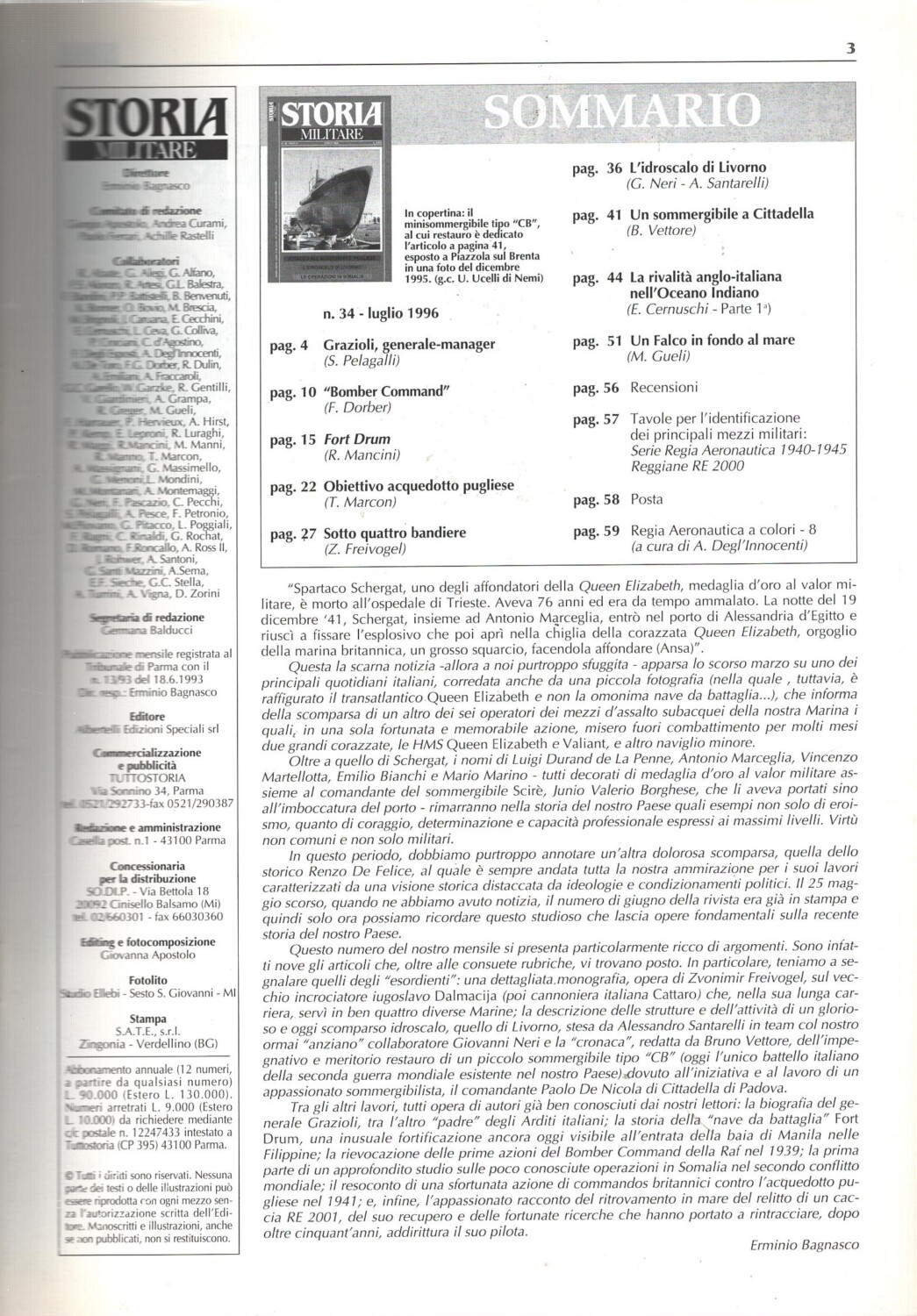 | Titolo: | Rivista Storia Militare n. 34 – Luglio 1996 – In copertina Minisommergibile CB ed. Albertelli |