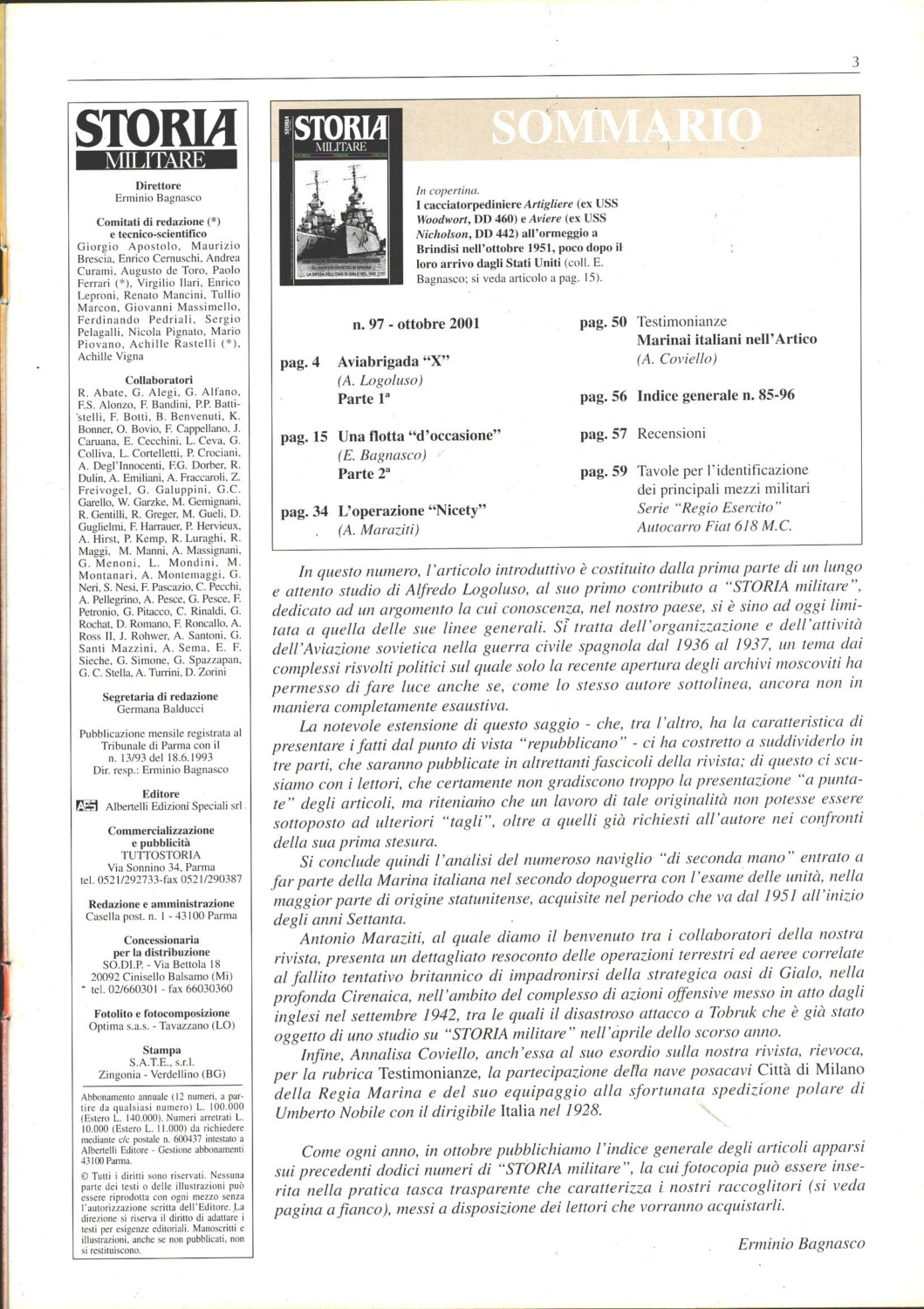 | Titolo: | Rivista Storia Militare n. 97 – Ottobre 2001 – In copertina cacciatorpediniere Artigliere ed. Albertelli |