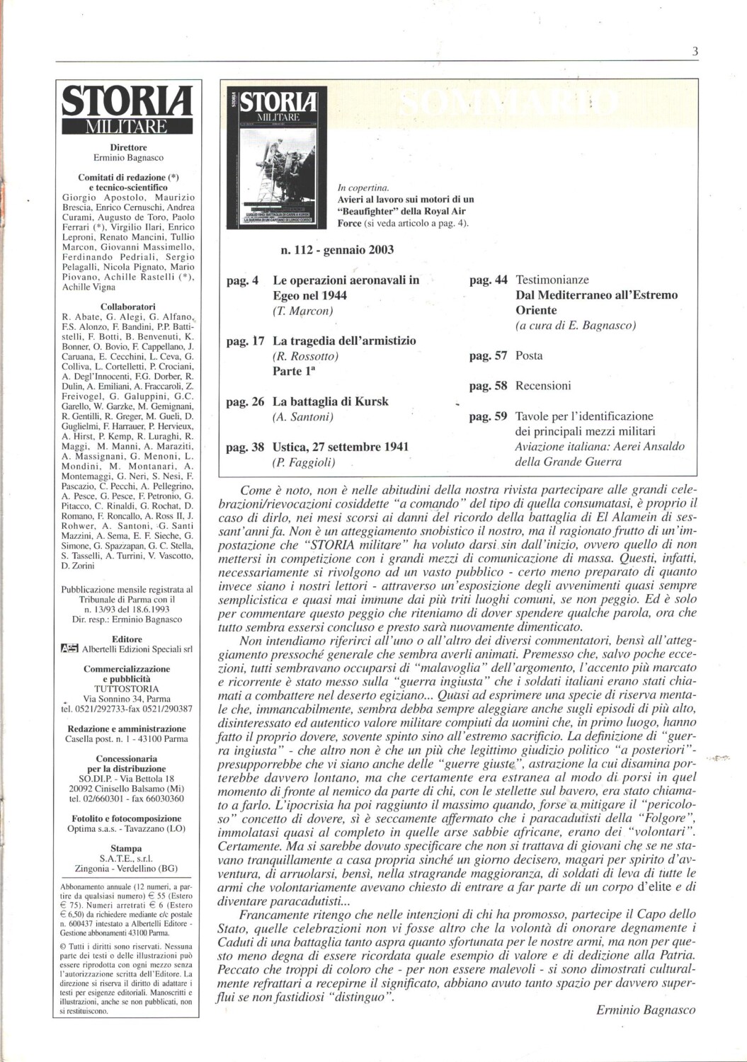 | Titolo: | Rivista Storia Militare n. 112 Gennaio 2003 – In copertina Avieri su Beaufighter ed. Albertelli |