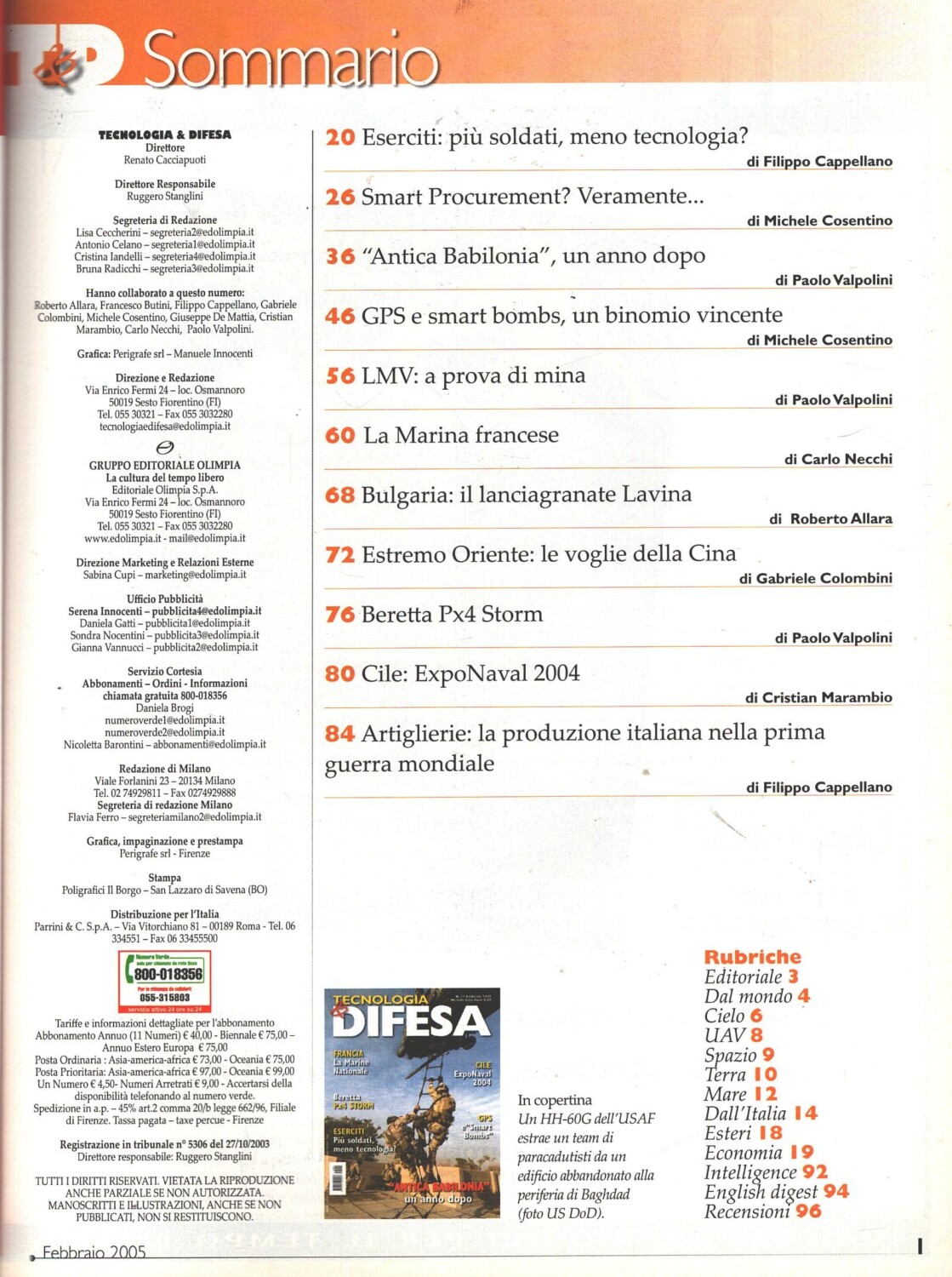 | Titolo: | Rivista Tecnologia & Difesa n. 11 – Febbraio 2005 – In copertina HH-60G ed. Olimpia |