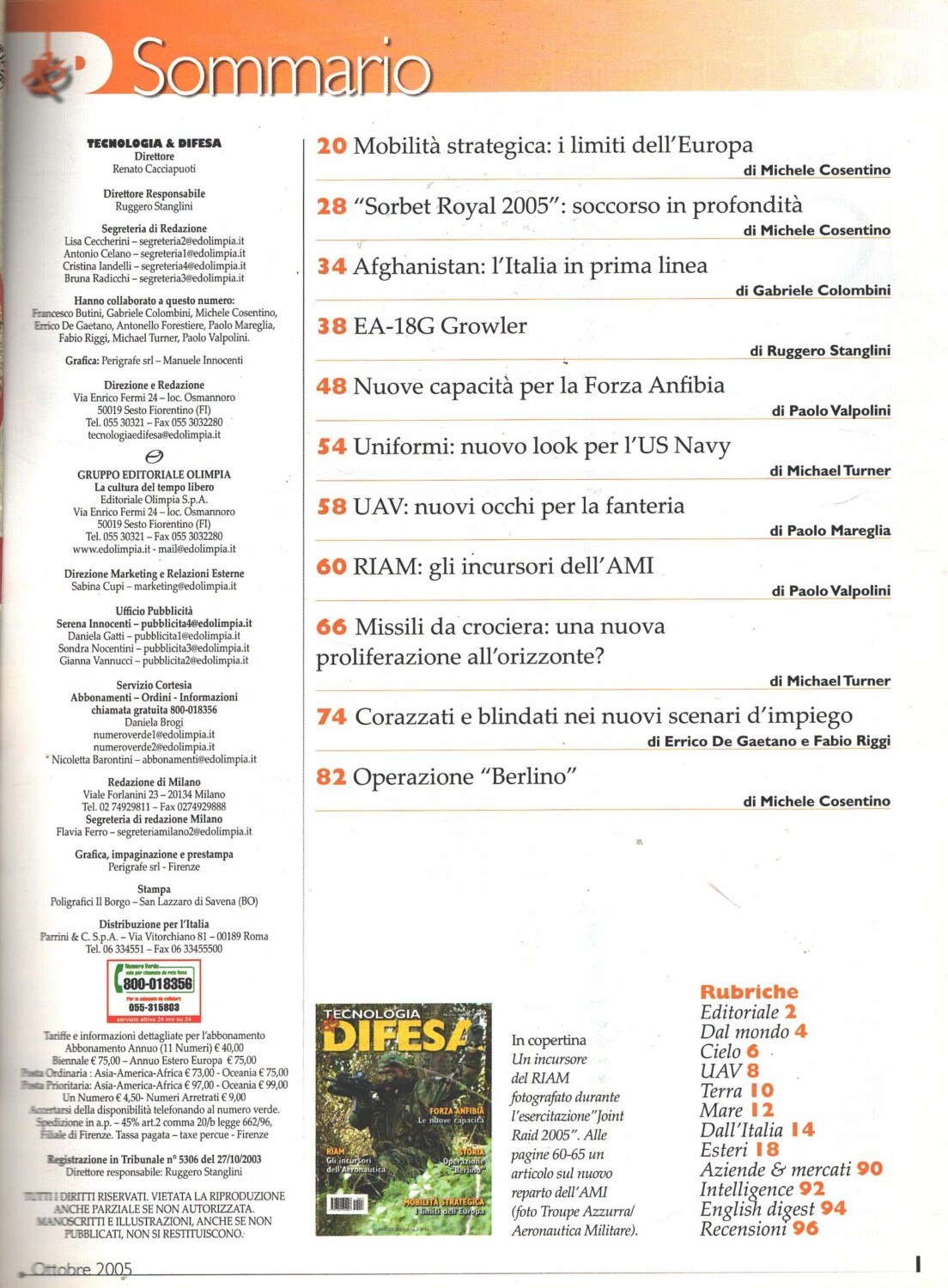 Rivista Tecnologia & Difesa n. 18 – Ottobre 2005 – In copertina Incursore del RIAM ed. Olimpia