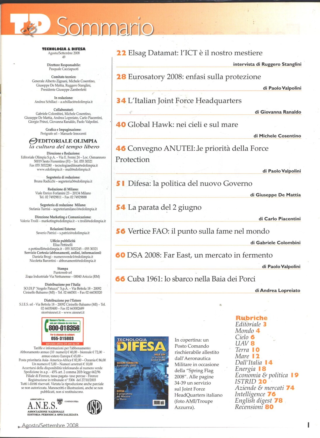 | Titolo: | Rivista Tecnologia & Difesa n. 49 – Agosto Settembre 2008 ed. Olimpia |