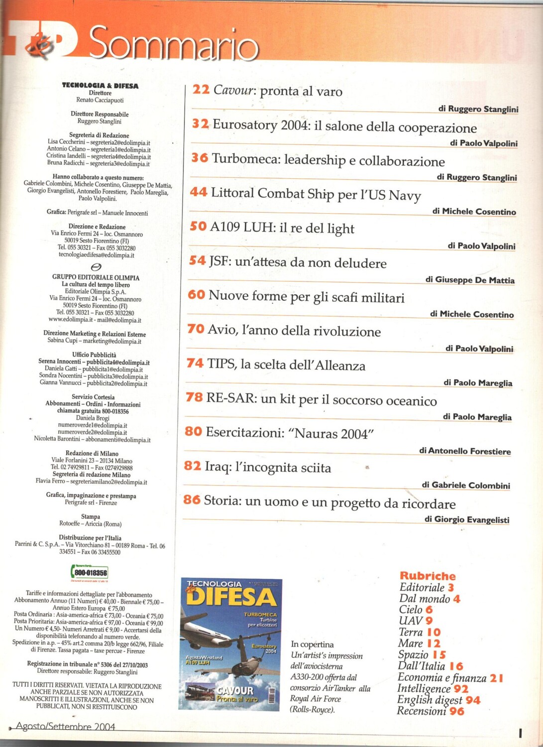 Rivista Tecnologia & Difesa n. 6 – Agosto Settembre 2004 – In copertina Aviocisterna A330-200 ed. Olimpia
