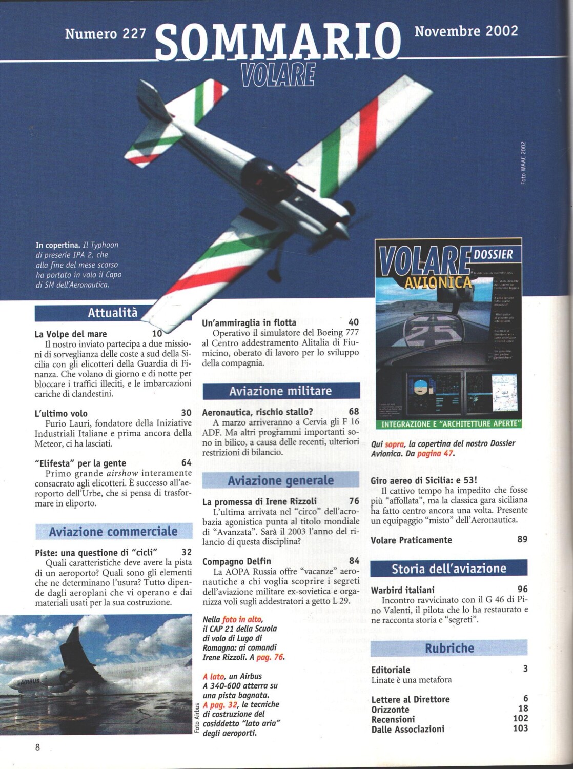 | Titolo: | Rivista Volare n. 227 – Novembre 2002 – In copertina Eurofighter Typhoon ed. Domus |