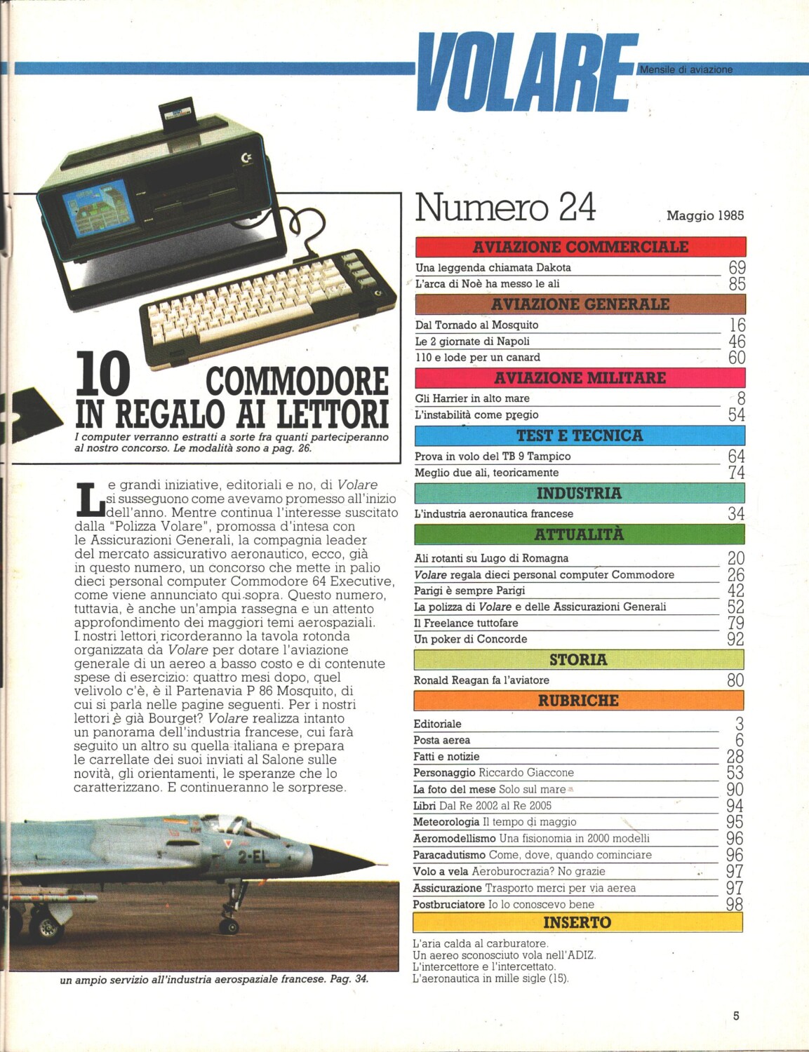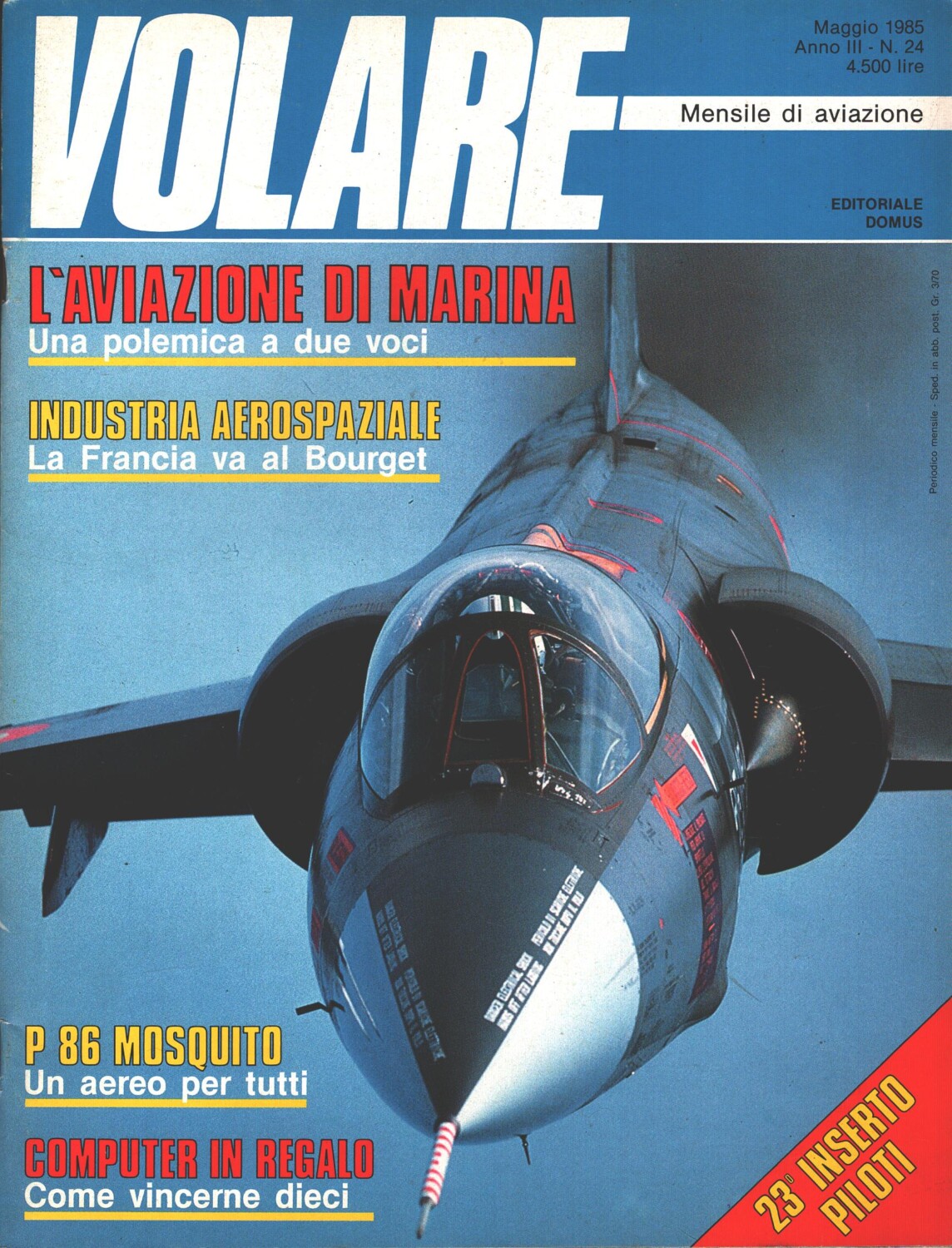 | Titolo: | Rivista Volare n. 24 – Maggio 1985 – In copertina Lockheed F-104 Starfighter ed. Domus – Con inserto |
