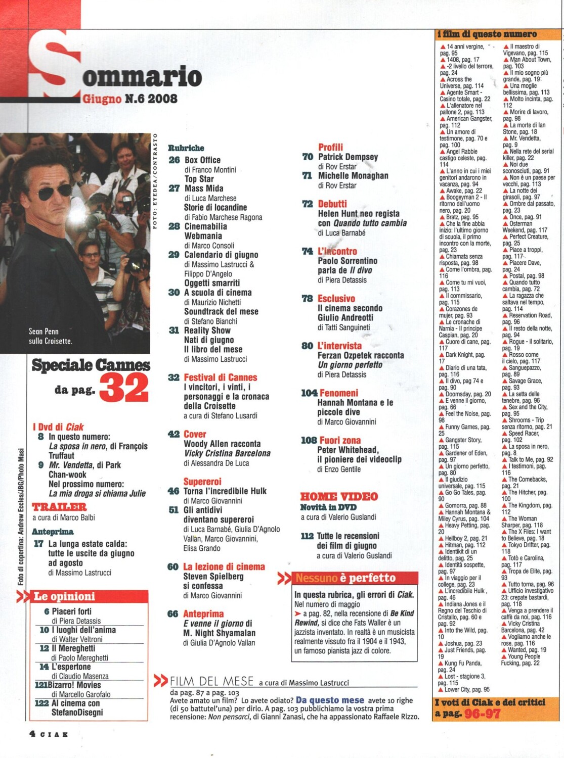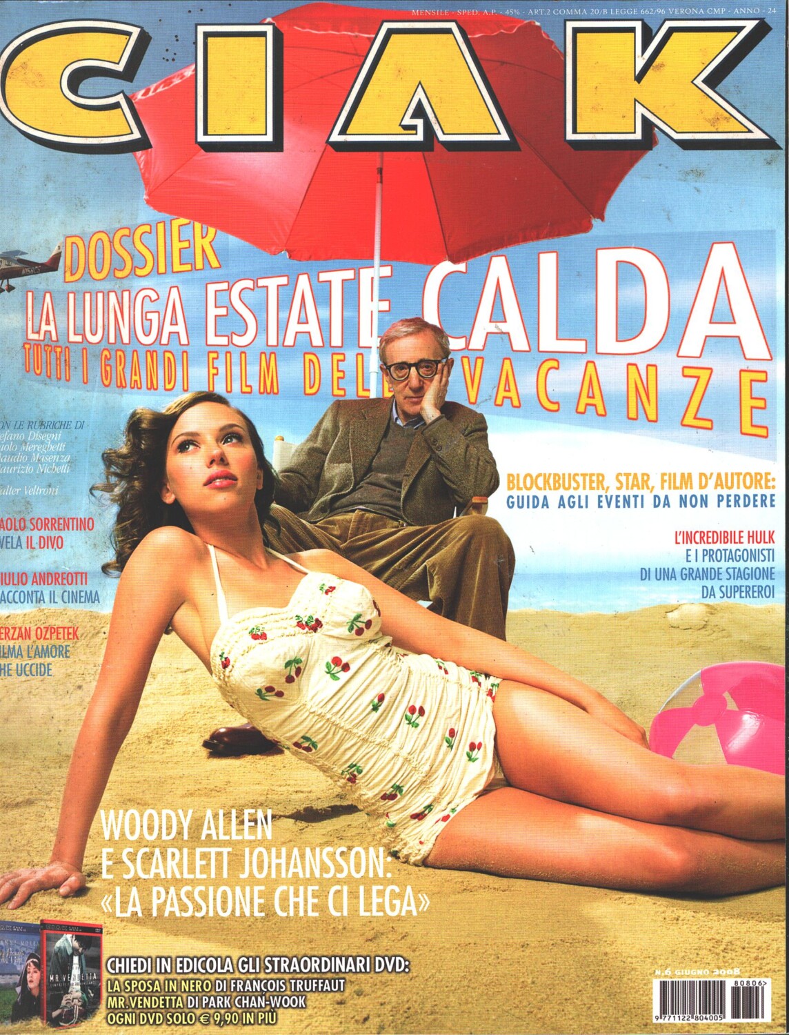 Rivista Ciak n. 6 – Giugno 2008. In copertina: Woody Allen e Scarlett Johansson. Con Cartoline