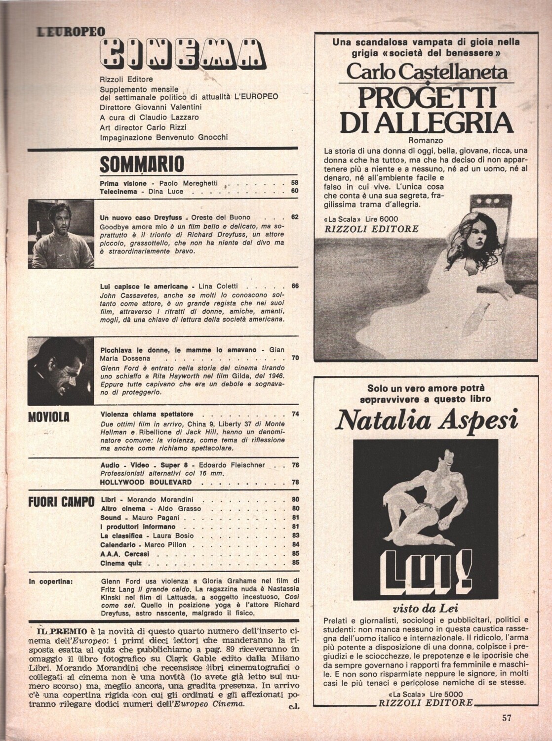 | Titolo: | Rivista L’Europeo Cinema – Aprile 1978 – In copertina Glenn Ford, Gloria Grahame ed. Rizzoli |