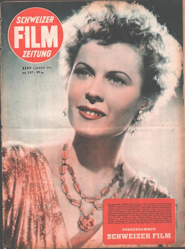 | Titolo: | Schweizer Film Zeitung n. 337 – 1 August 1946 – In copertina Anne Marie Blanc – Rivista in Tedesco |