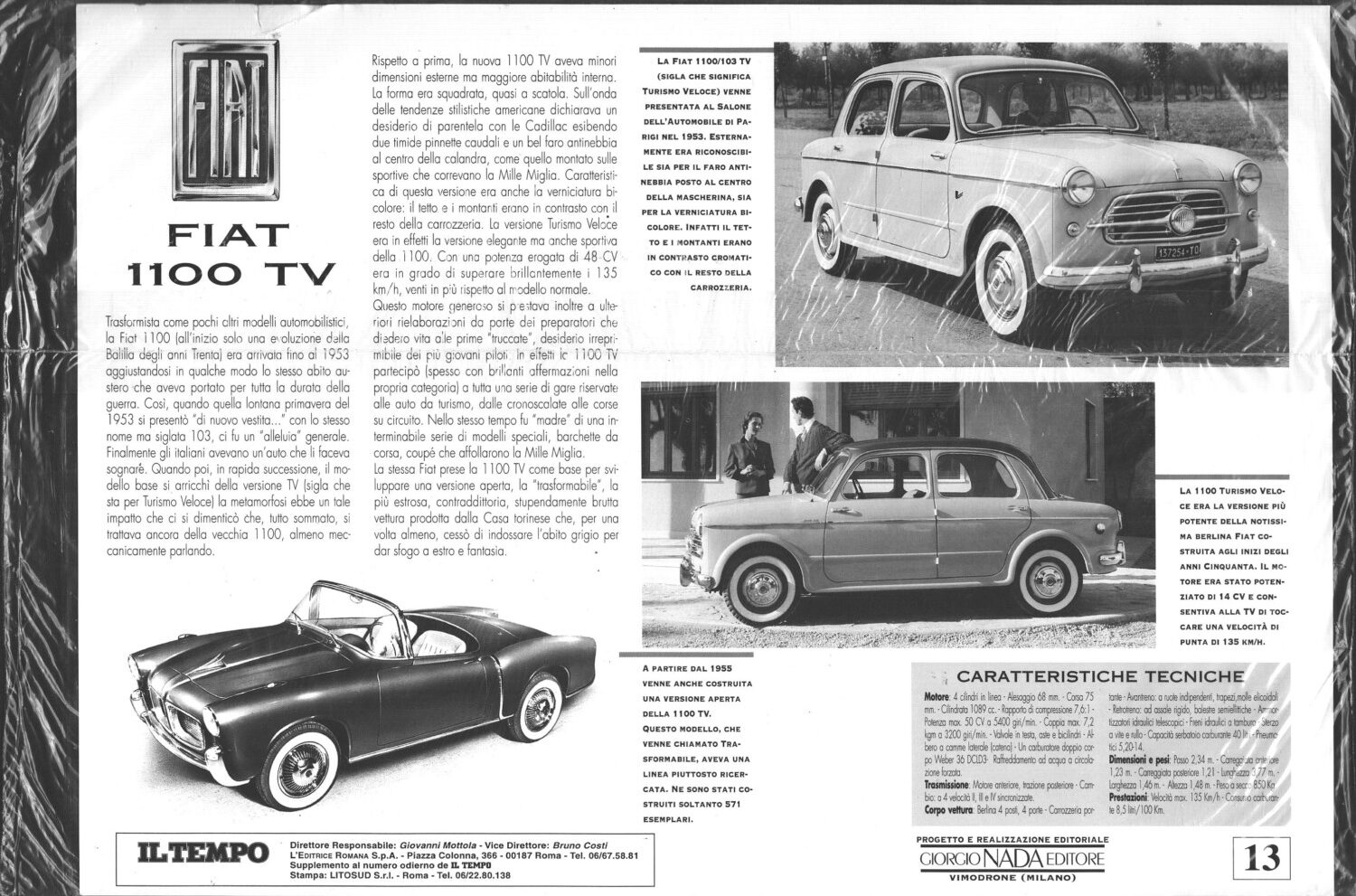 | Titolo: | Fiat 1100 TV – Mini Poster (cm 35×25) + Scheda Techica sul retro ed. Nada |